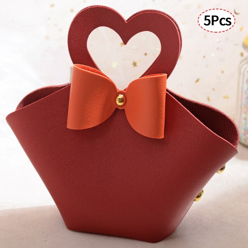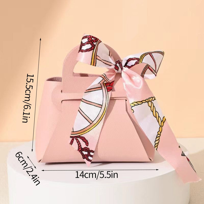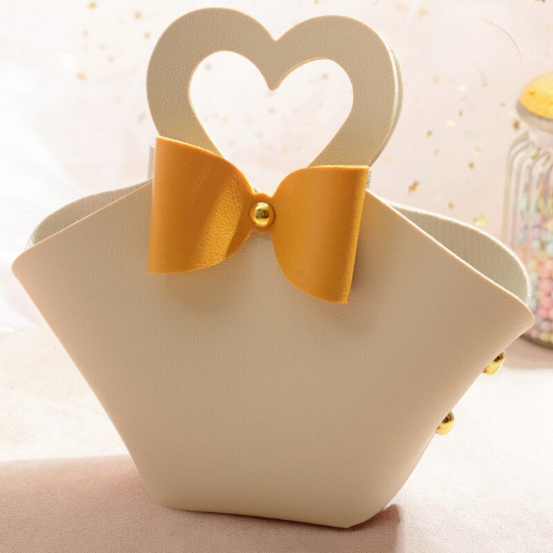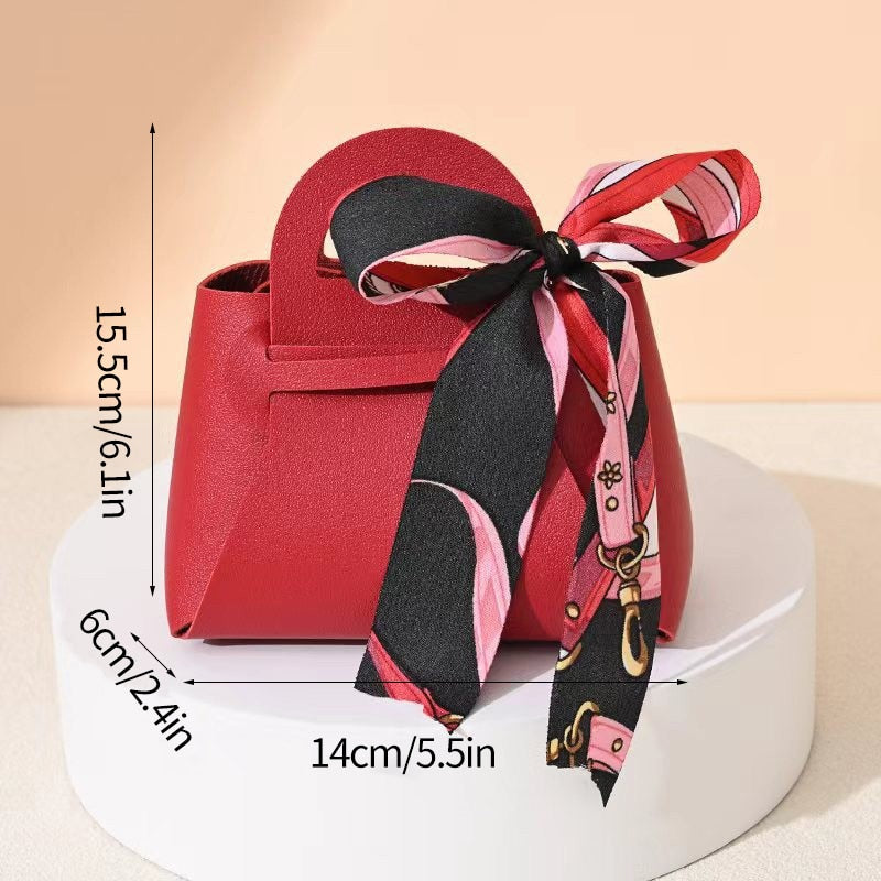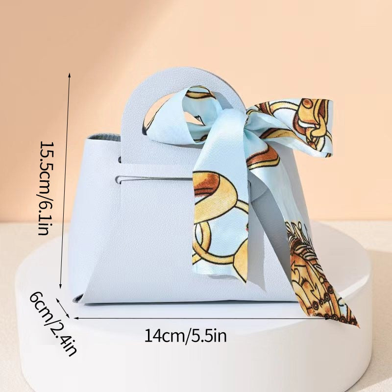 20PCS Leather Gift Bags Bow Ribbon Packaging Bag Wedding Favour Distributions Bags Christmas Candy Packaging Box Mini Handbag