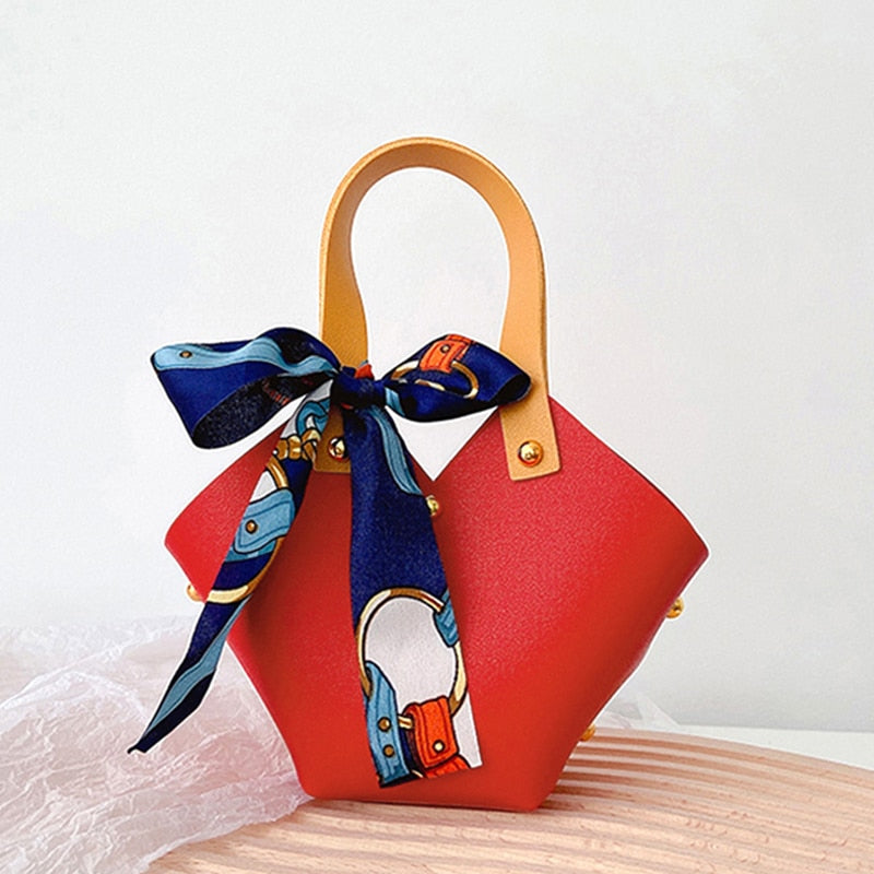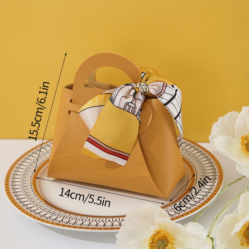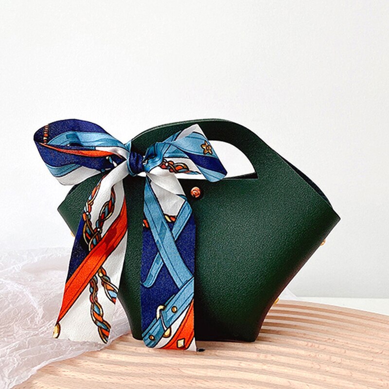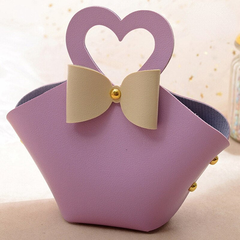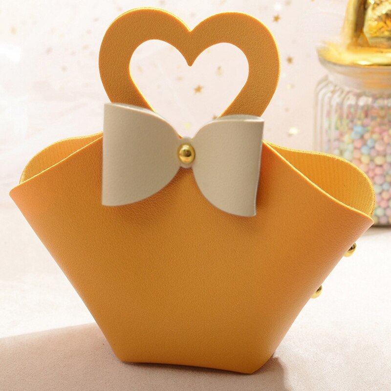 20PCS Leather Gift Bags Bow Ribbon Packaging Bag Wedding Favour Distributions Bags Christmas Candy Packaging Box Mini Handbag