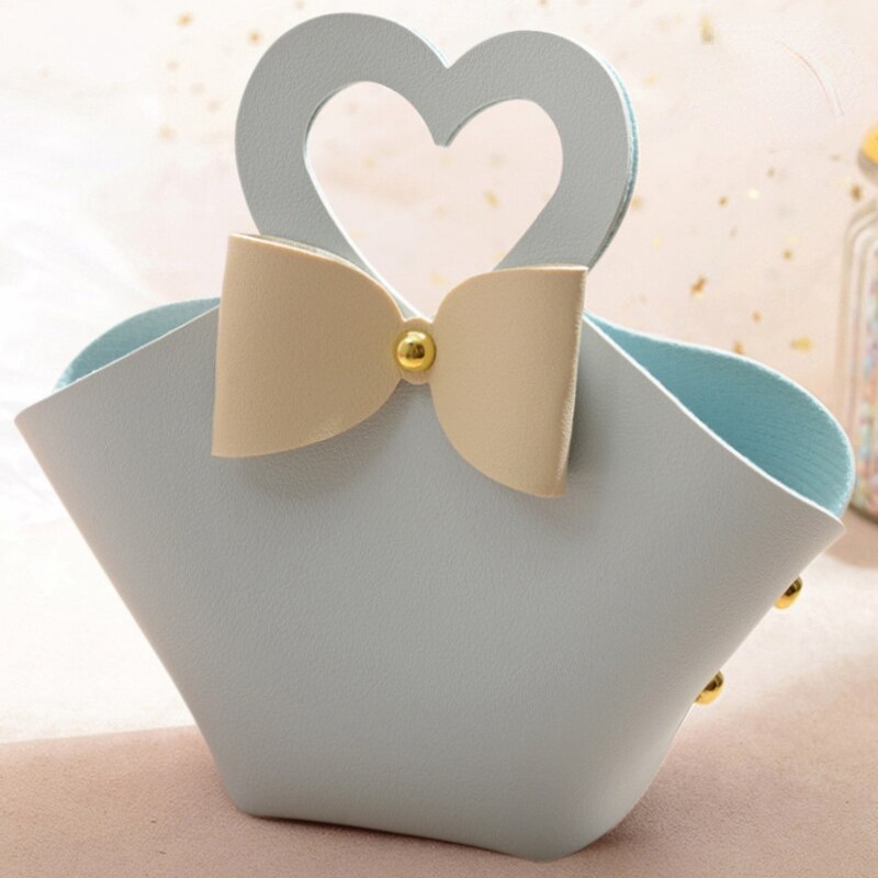 Leather Gift Bags Bow Ribbon Packaging Bag