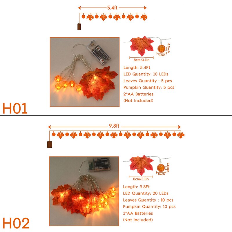 10/20Leds Pumpkin Maple Leaves Light String Fall Garland Battery Powered Indoor Outdoor Garden Halloween Thanksgiving Home Decor