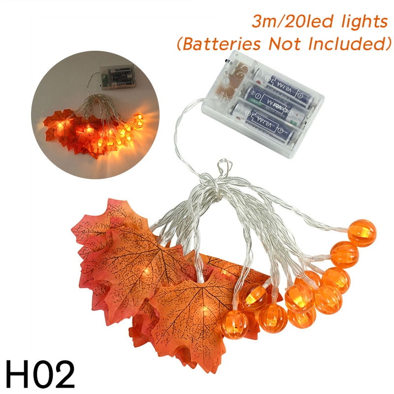 10/20Leds Pumpkin Maple Leaves Light String