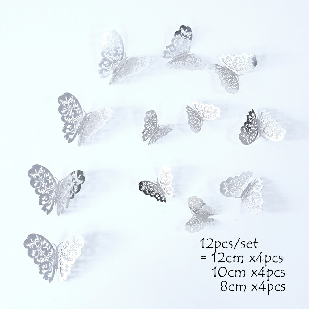 12Pcs 4D Hollow Butterfly Wall Sticker DIY Home Decoration Wall Stickers wedding Party Wedding Decors Butterfly Kids Room Decors