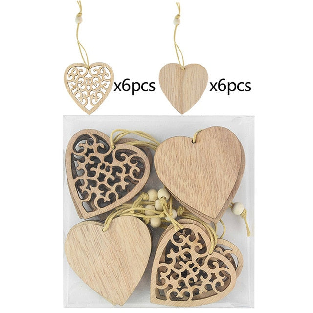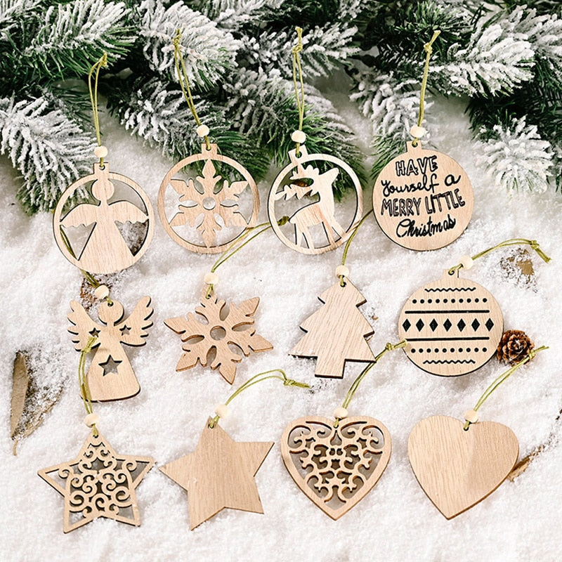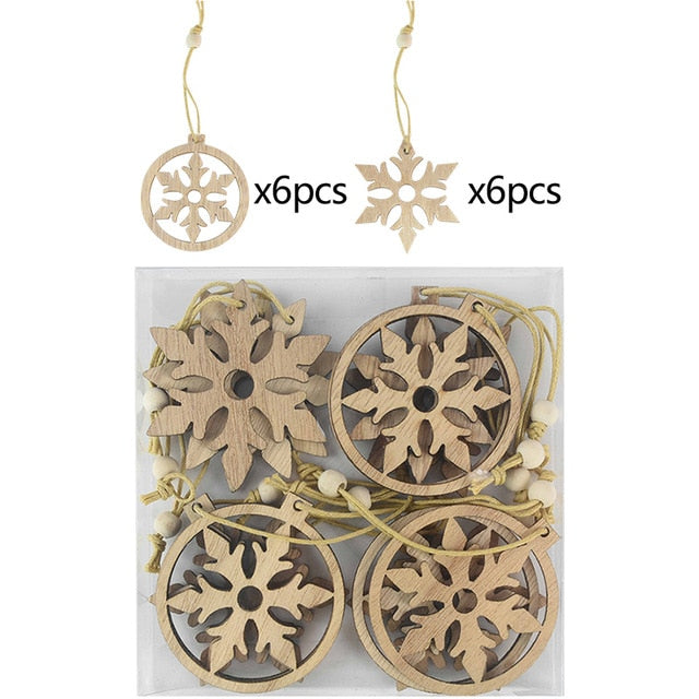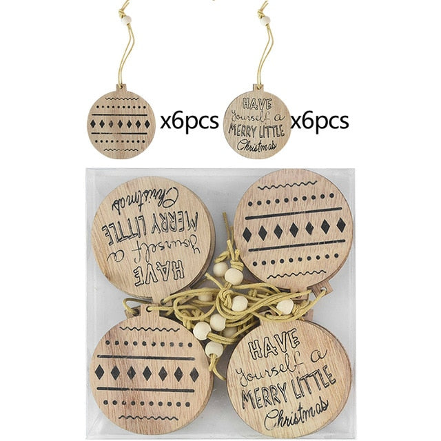 12pcs/box Christmas Wooden Pendants Xmas Tree Hanging Ornaments DIY Wood Crafts For Home Christmas Party New Year Decorations