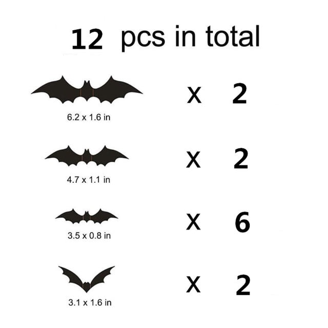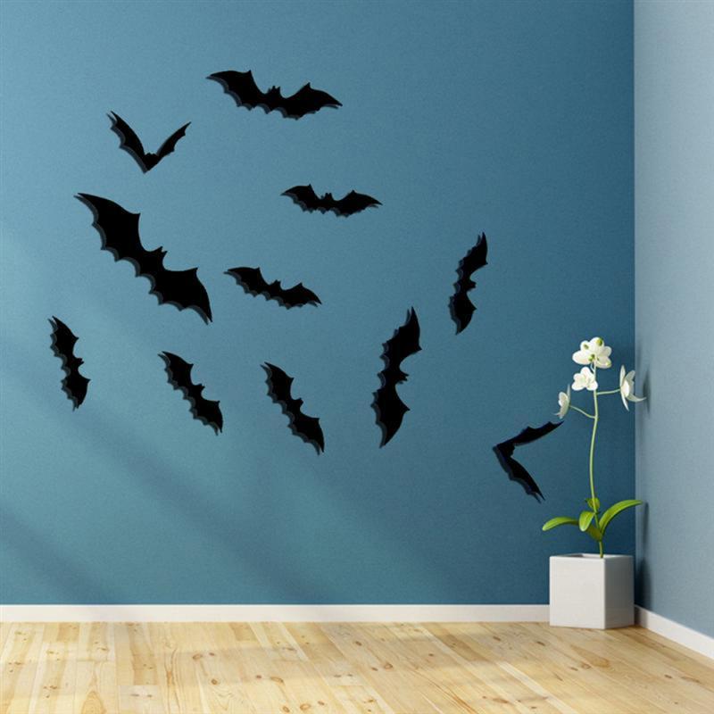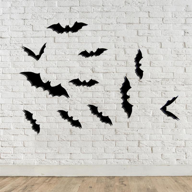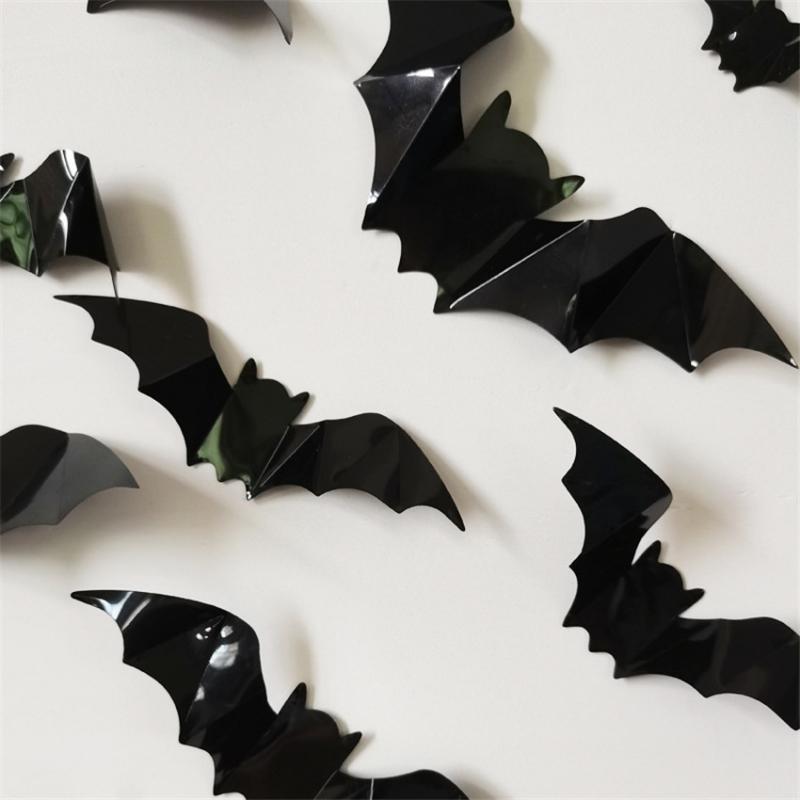 12pieces Halloween 3D Black Bat Wall Stickers Halloween Party DIY Decorative Wall Decal Halloween Horror Bats Removable Stickers