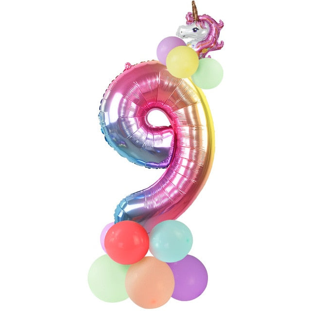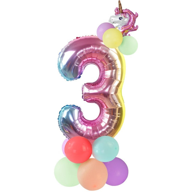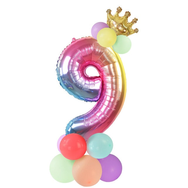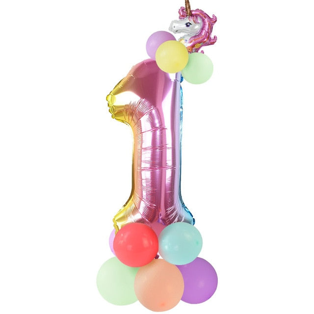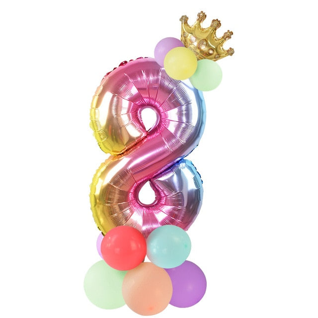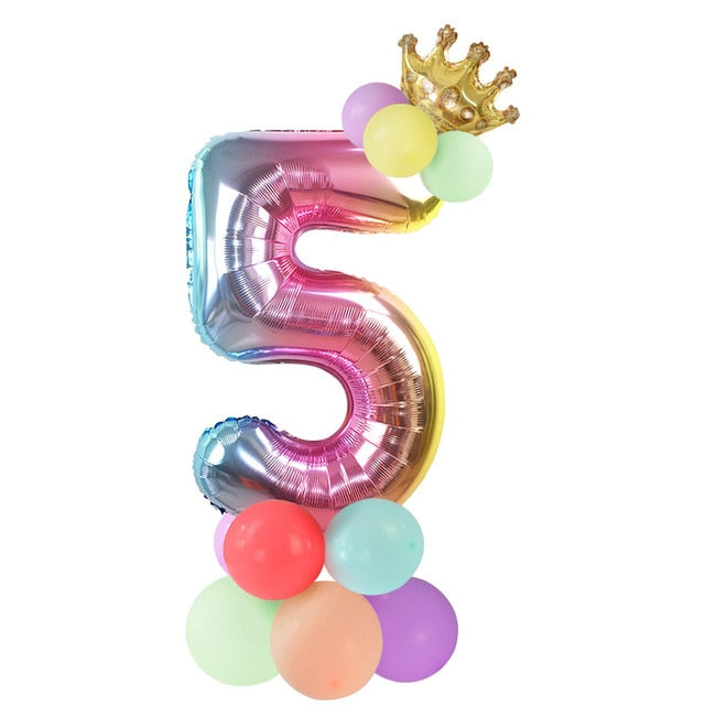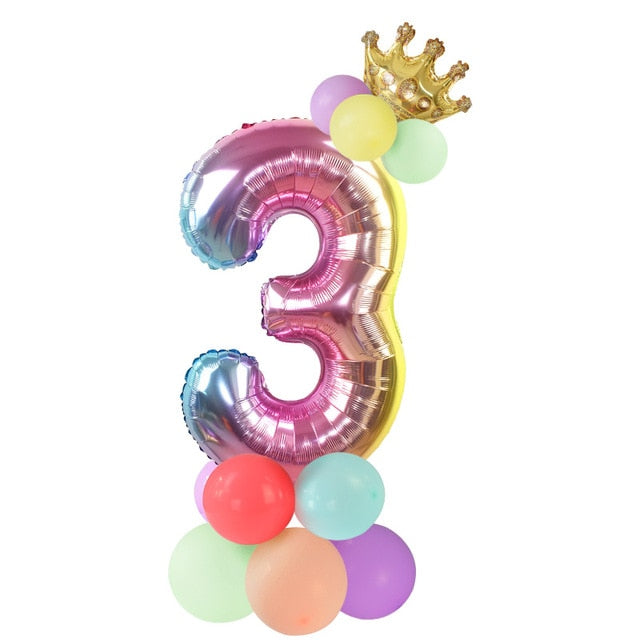 13Pcs/set Birthday Balloons Rainbow Number Foil Balloons Kids 1st Birthday Party Decorations Balloons Happy Birthday Balloon