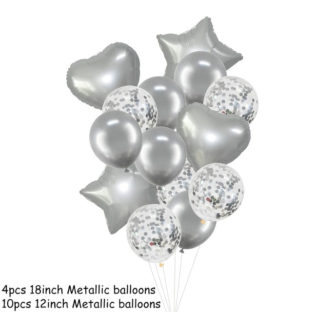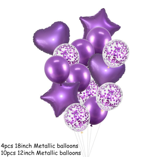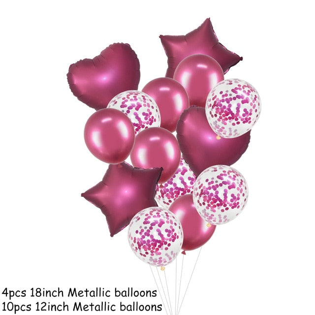 14Pcs Multi Confetti Balloon Happy Birthday Party Balloons Rose Gold Helium Ballons Boy Girl Baby Shower Party Supplies