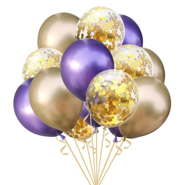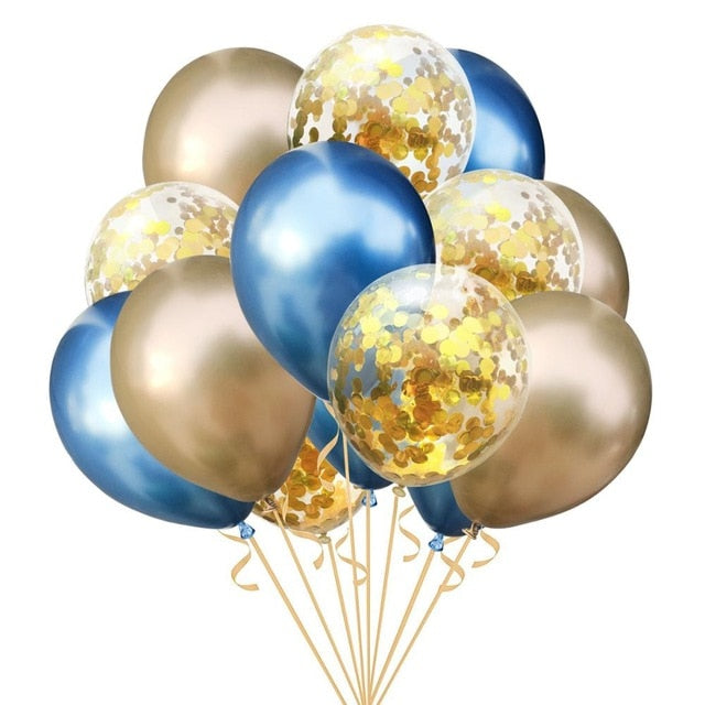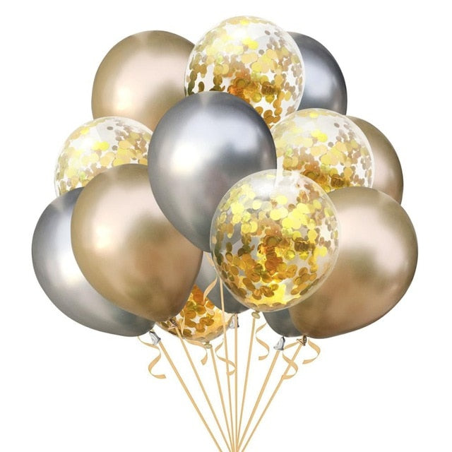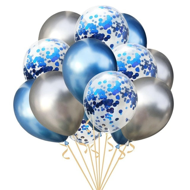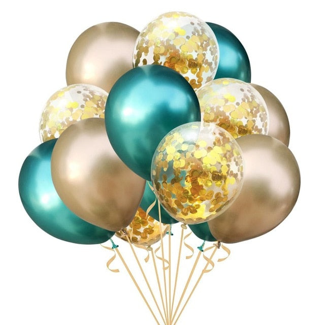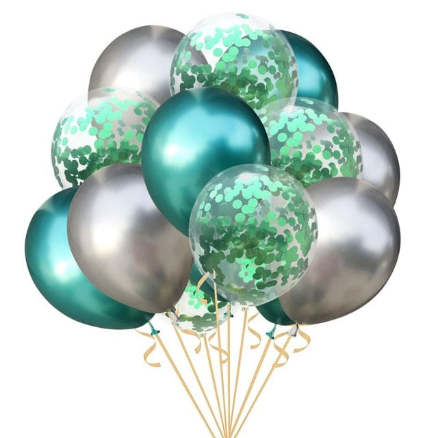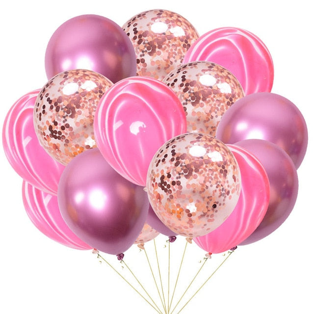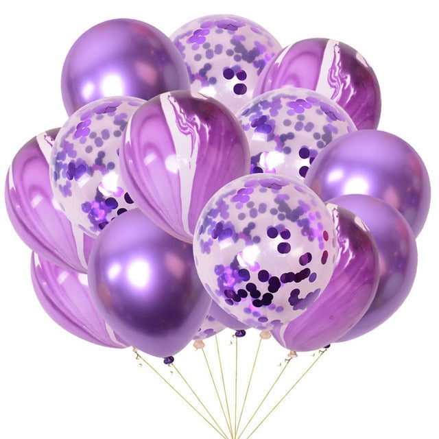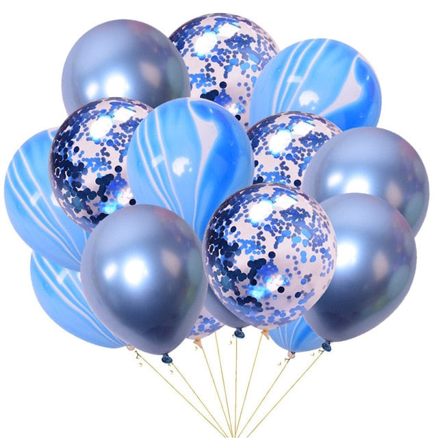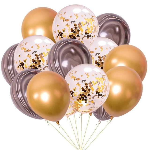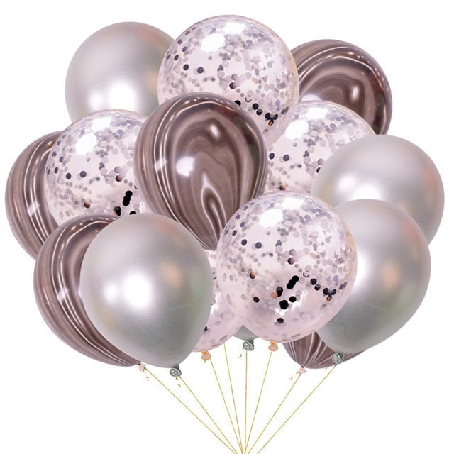 15pcs 12inch Agate Balloons with Confetti Baloon Metal Latex Balloon Birthday Party Weddding Decoration Globos Graduation Decor