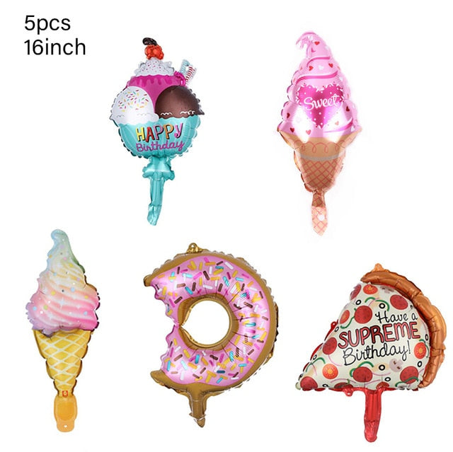 1set Pink Donut Lip Ice Cream Popcorn Candy Foil Balloon Baby Shower Happy Birthday Decoration Balloon Boy Girl Cute Kid Toy