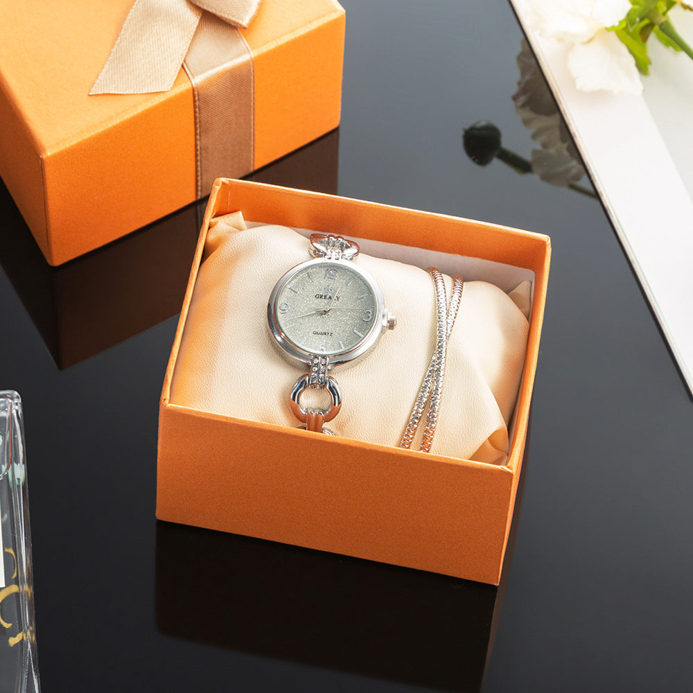 2-Piece Simple Casual Watch Set Frosted Hollow Watch Gift Box