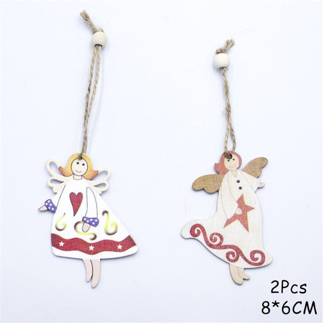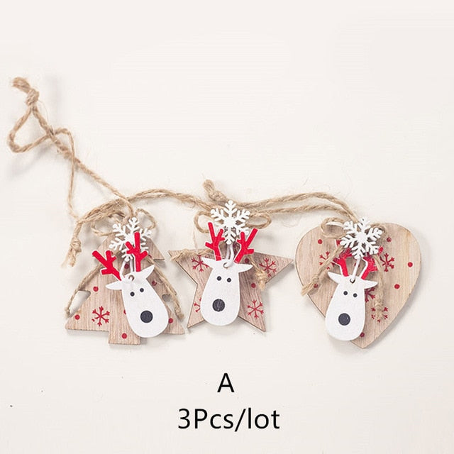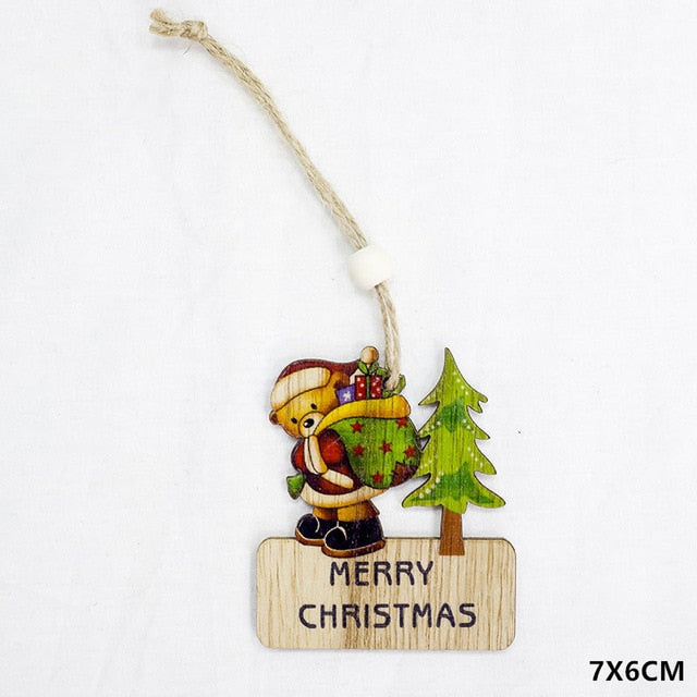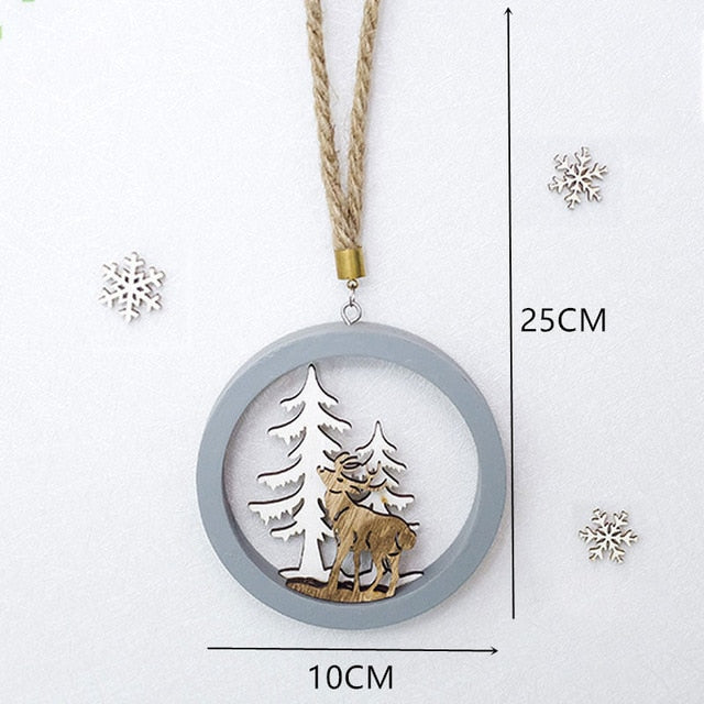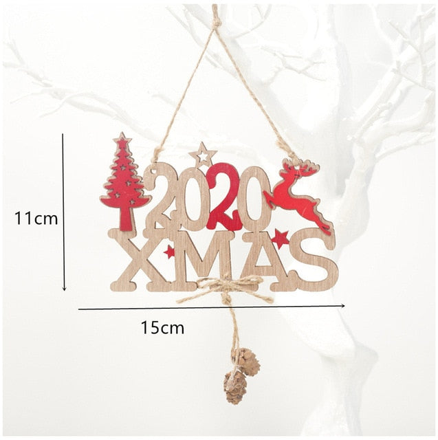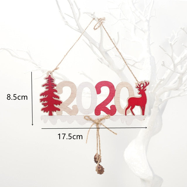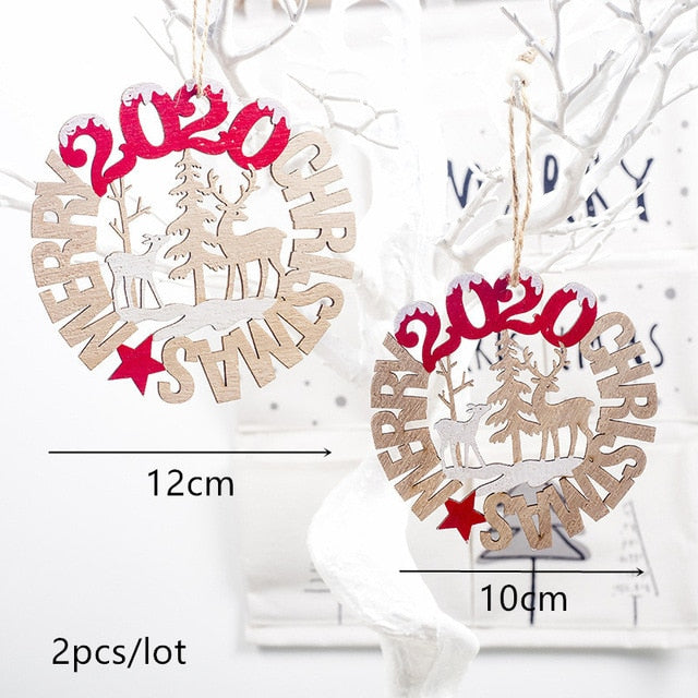 2021 New Year Natural Xmas Elk Wood Craft Christmas Tree Ornament Noel Christmas Decoration for Home Wooden Pendant Navidad Gift