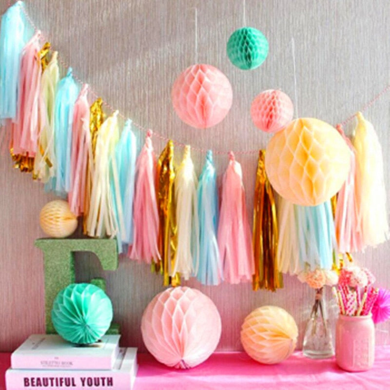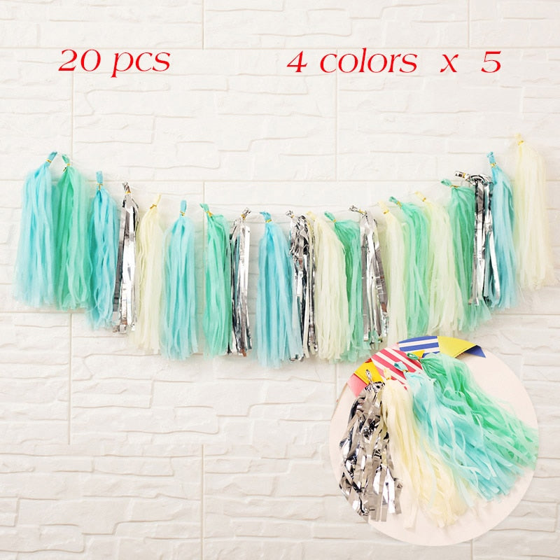 20pieces Multicolor DIY Tissue Paper Tassel Garland Sets Baby Shower Anniversary Birthday Party Wedding Decoration Crafts Supplies