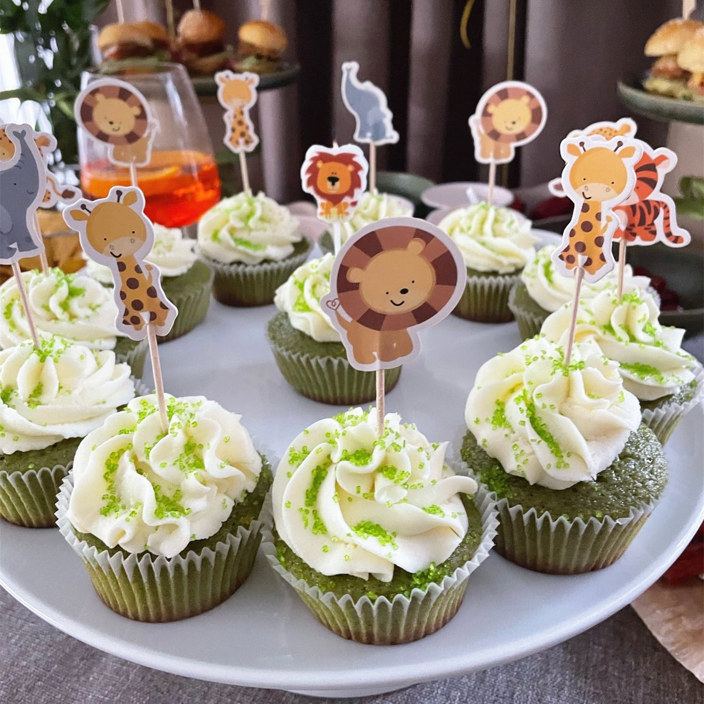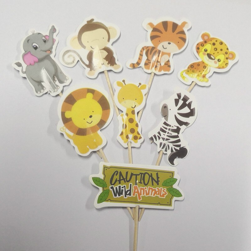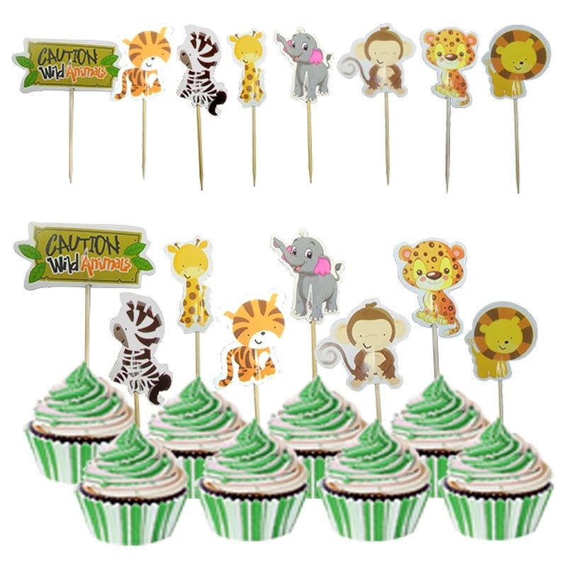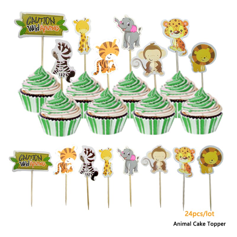 24pieces Safari Jungle Party Animal Cupcake Toppers Picks Birthday Party Decoration Kids Baby Shower Girl Favors Cupcake Toppers