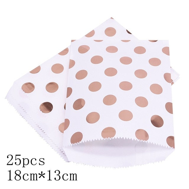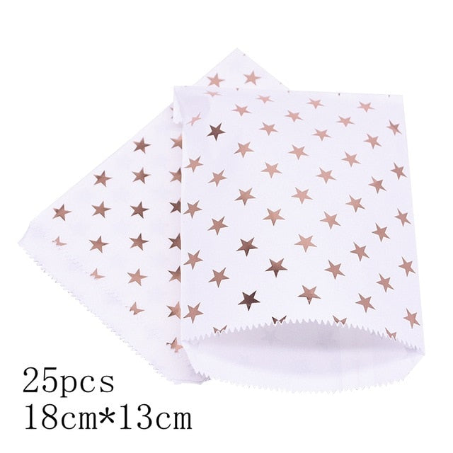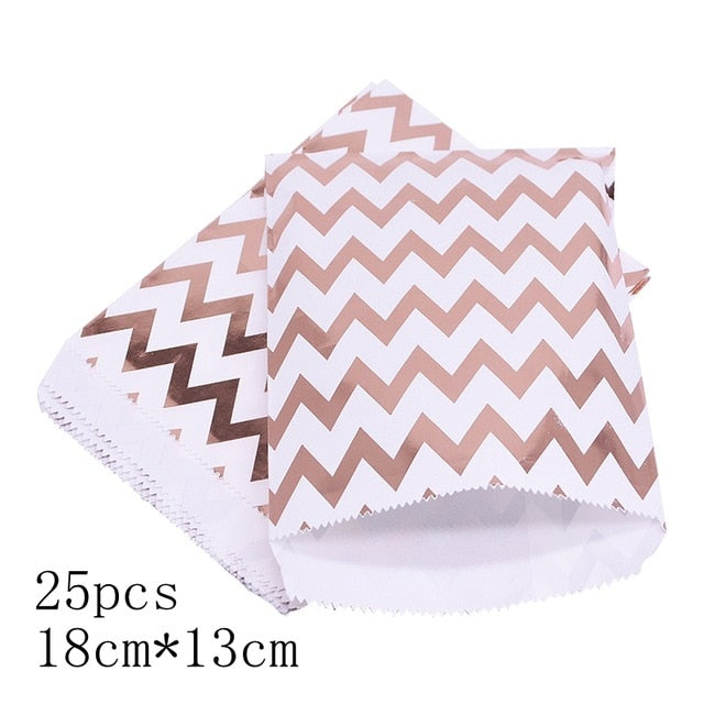 25pcs/pack 18cm Gift Bags Paper Pouch Rose Gold Paper Food Safe Bags Birthday Wedding Party Favors Gift Bags Packing for Guests