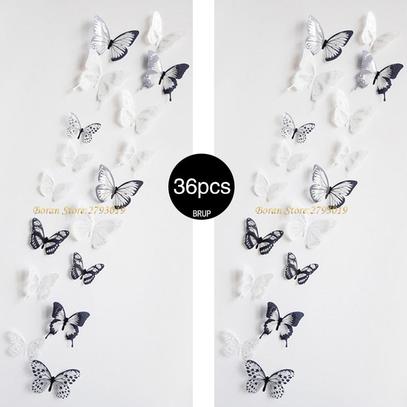 36pcs 3D Crystal Butterfly Wall Stickers New Year Christmas Home Decor Creative Butterflies With Diamond Party Decoration