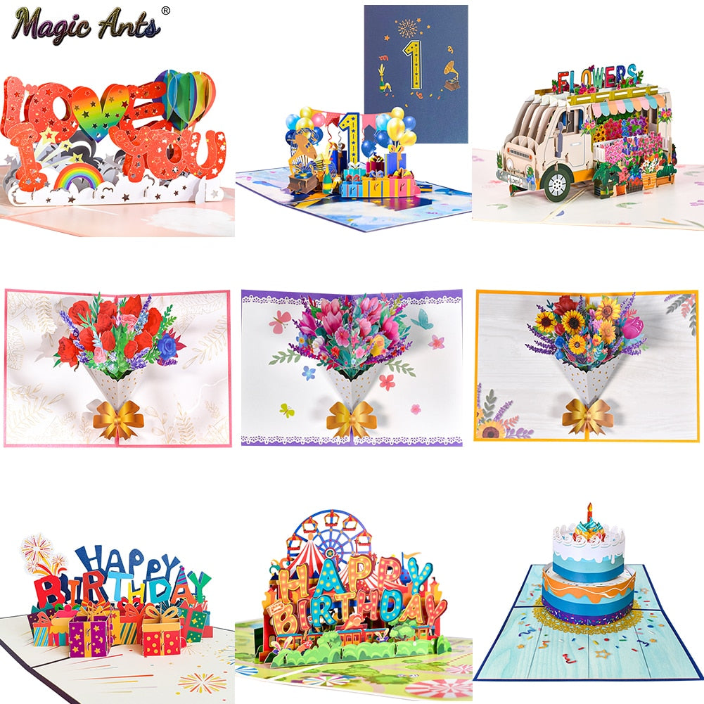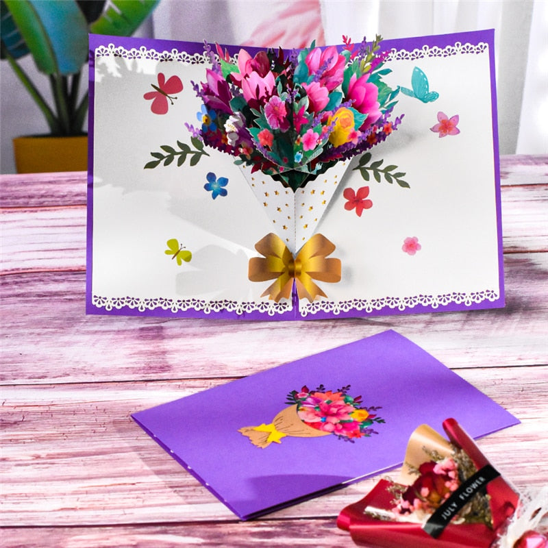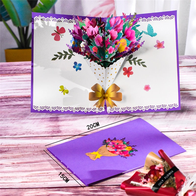 3D Pop-Up Cards Flowers Card Gifts Postcard