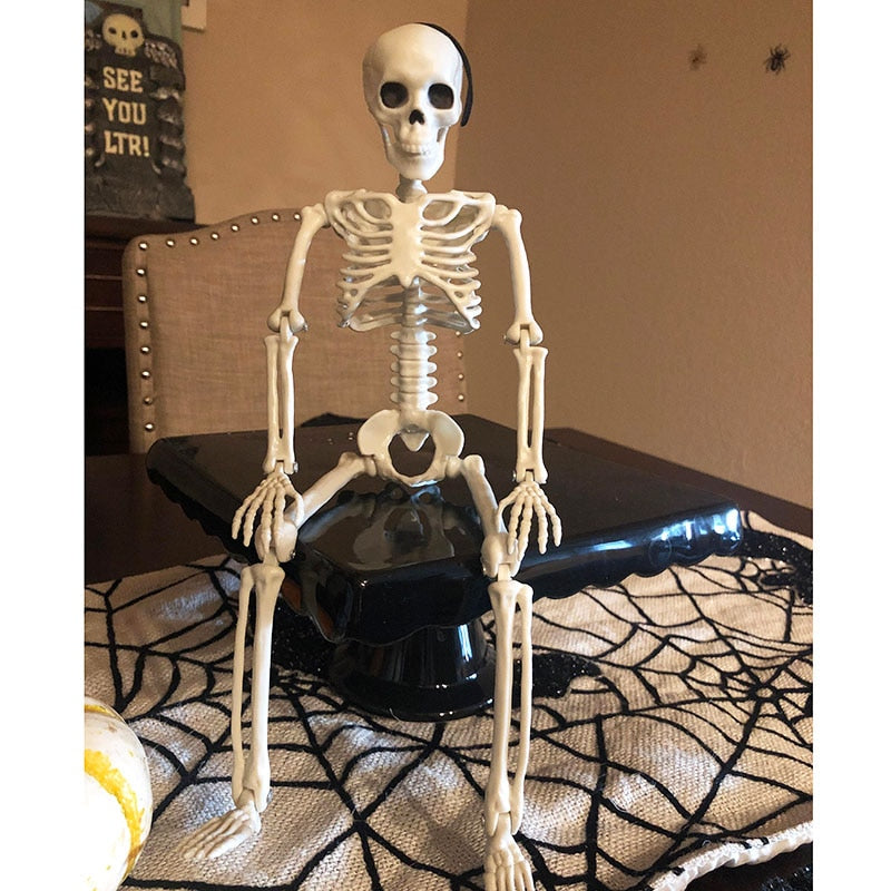 40cm Halloween Movable Skeleton Fake Human Skull Bones Halloween Party Home Bar Decorations Haunted House Horror Props Ornament