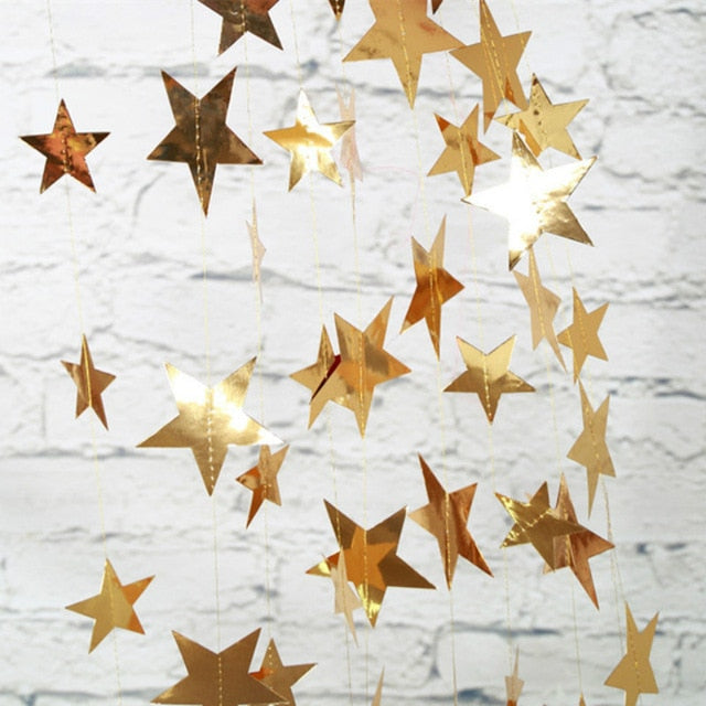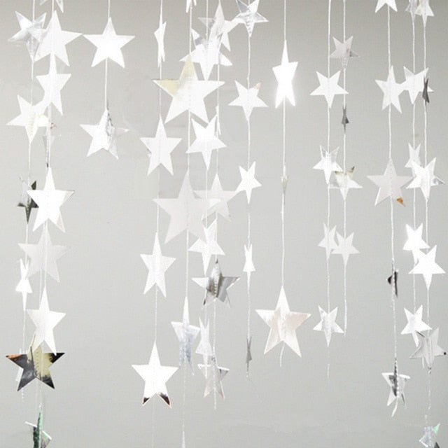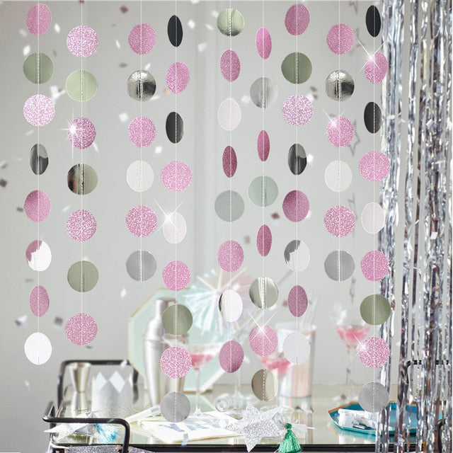 4m Mirror Paper Star Round Garland Flash Banner Happy Birthday Decoration Adult Boy Girl Baby Shower Curtain Decor Wedding DIY