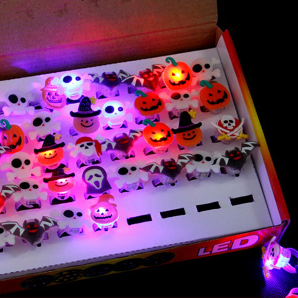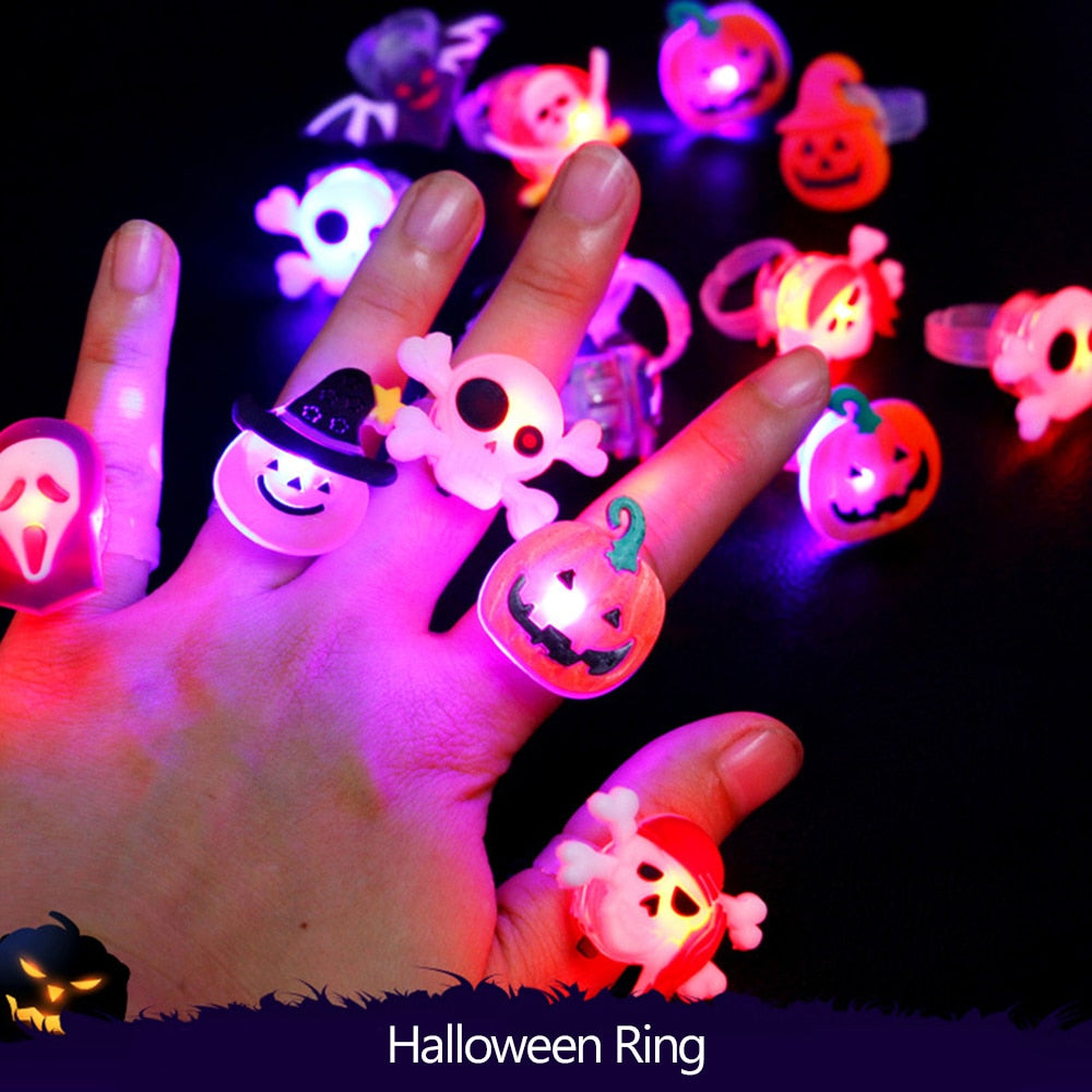 5/10/15/20pieces Halloween Decorations Creative Cute Glowing Ring Pumpkin Ghost Skull Rings for Kids Gifts Halloween Party Supplies