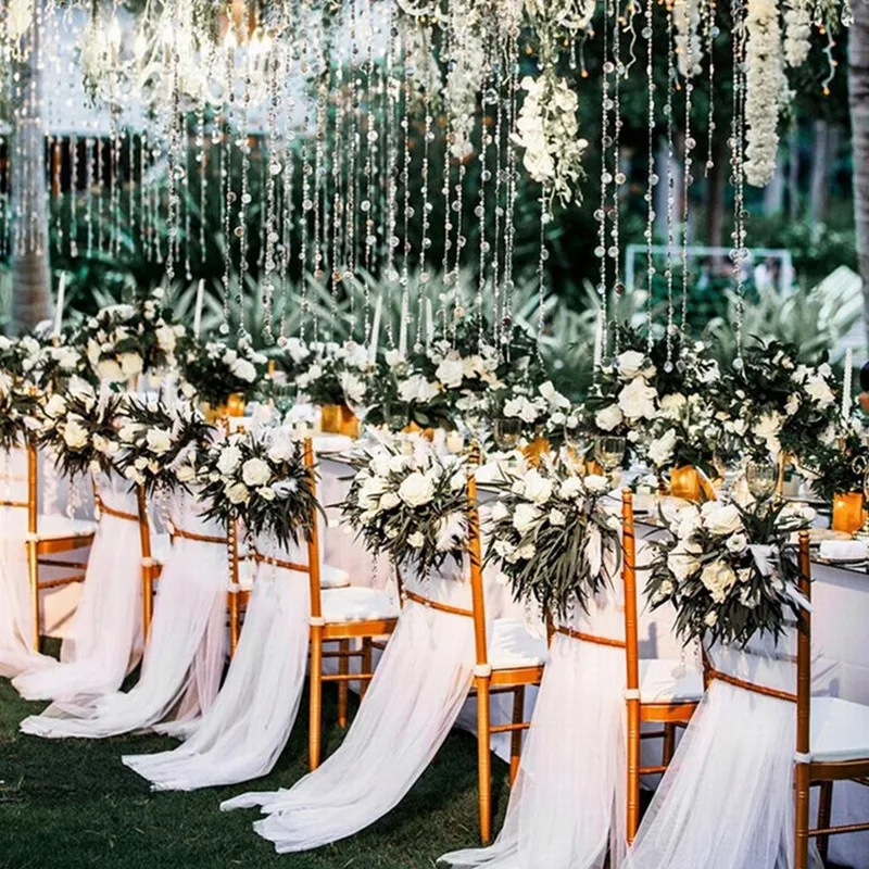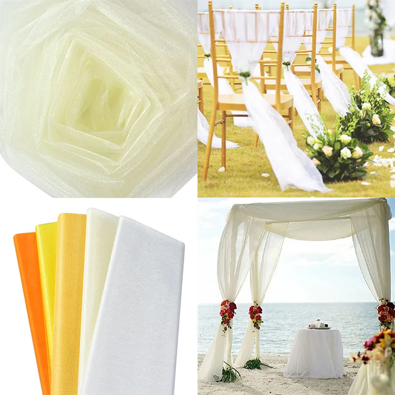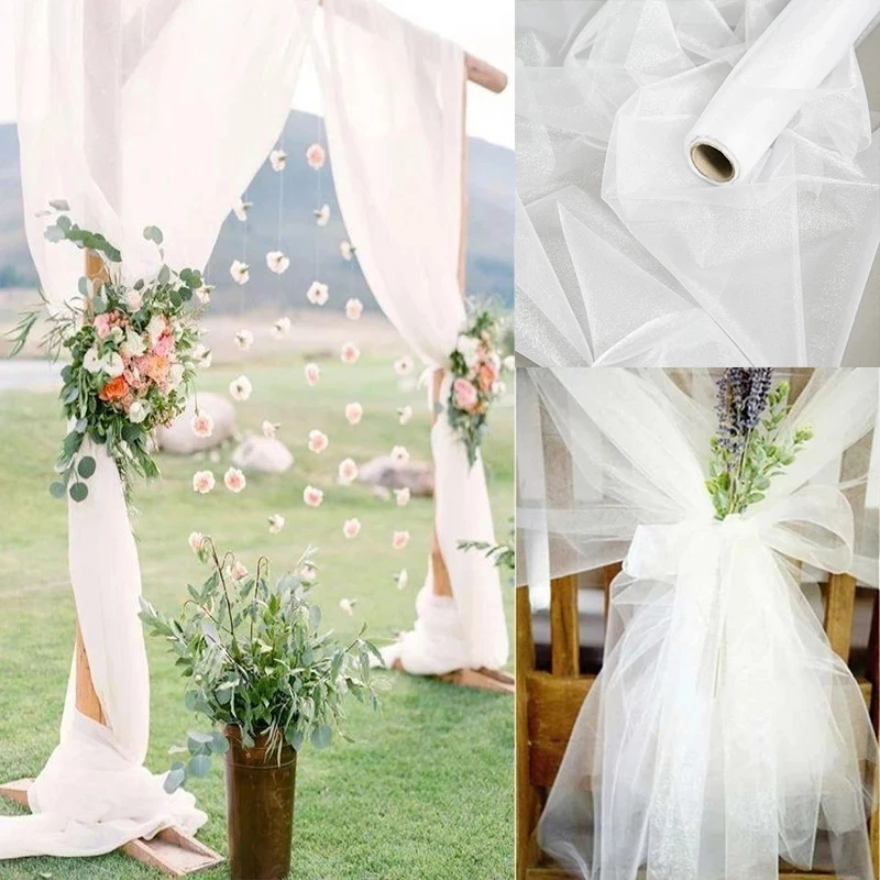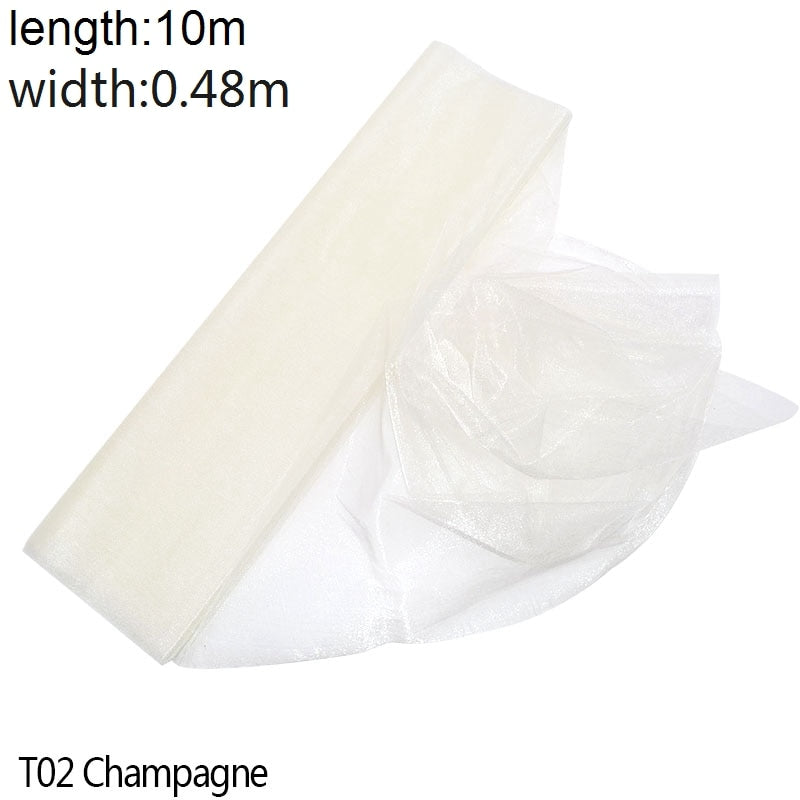 5/10m Tulle Wedding Organza Roll Sheer Crystal Organza Fabric for Wedding Decoration Mariage Yarn Birthday Event Party Supplies