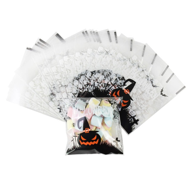 50pcs 10x10cm Christmas Candy Bags Cute Pumpkin Ghost Gift Bag For Cookies Snack Food Packing Christmas Party Decor Supplies