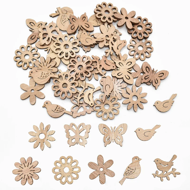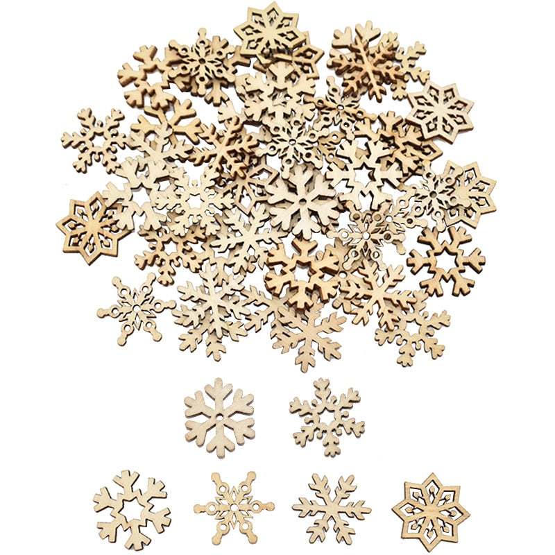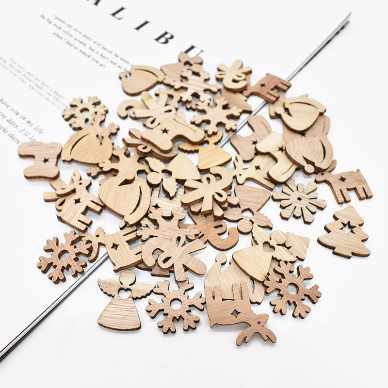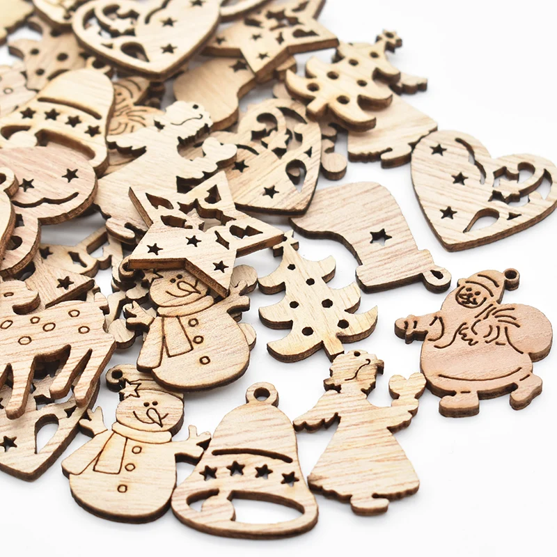 50Pcs Christmas Natural Wooden Chip Santa Claus Snowflake Christmas Tree Hanging Ornaments Pendant Navidad Decoration DIY Craft