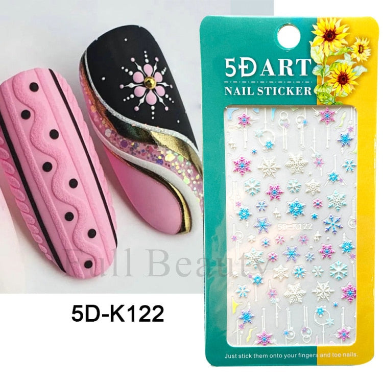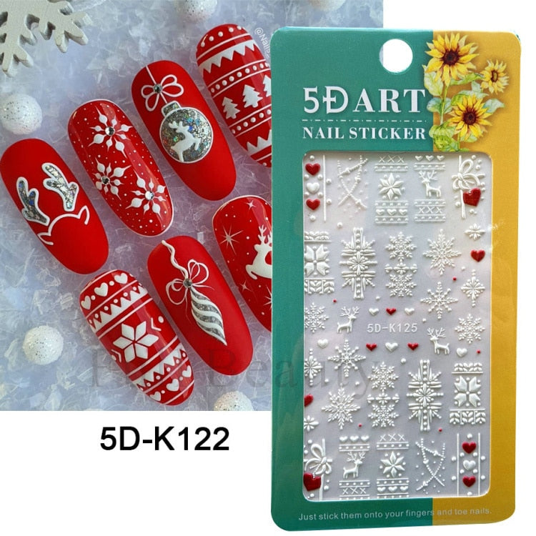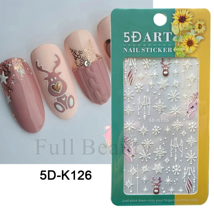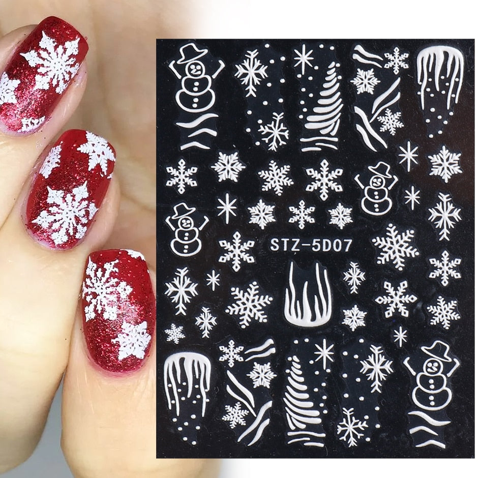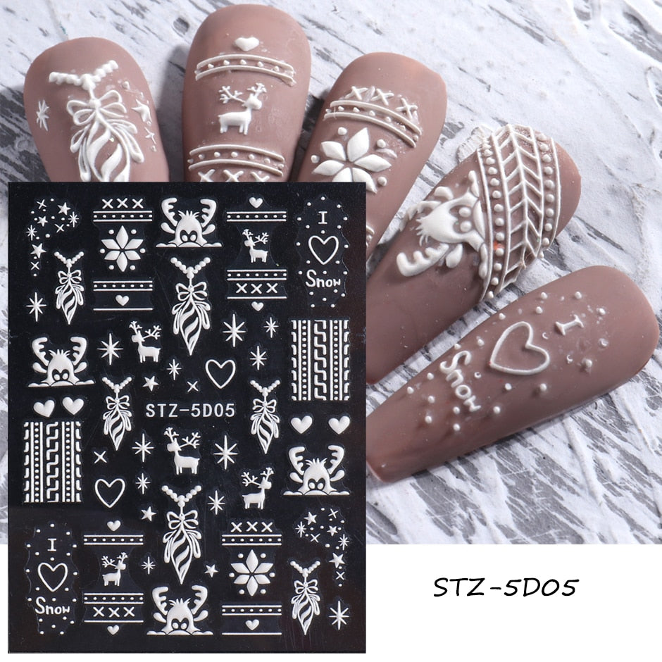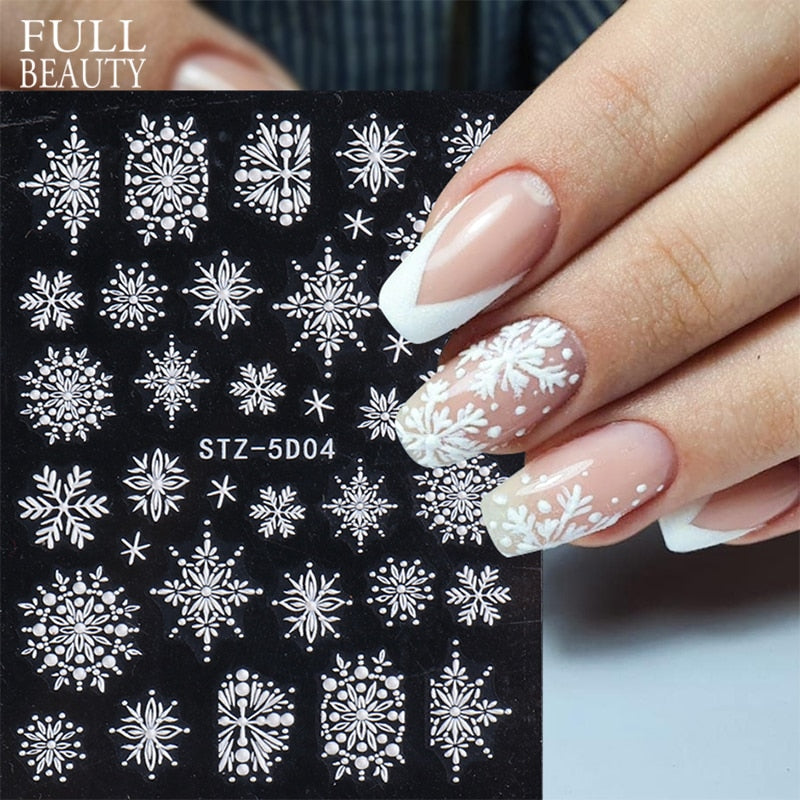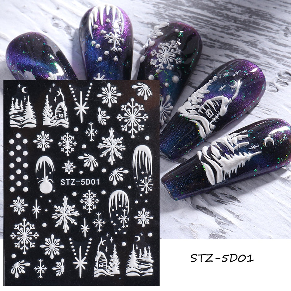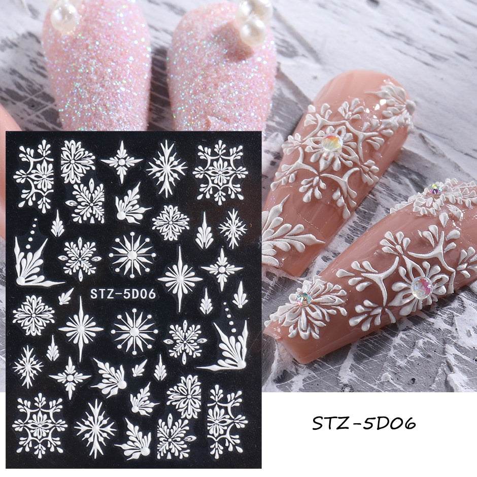 5D White Snowflakes Embossed Sticker Christmas New Year Nail Art Design Winter Charms Flower Manicure Slider Decals CHSTZ5D01-08