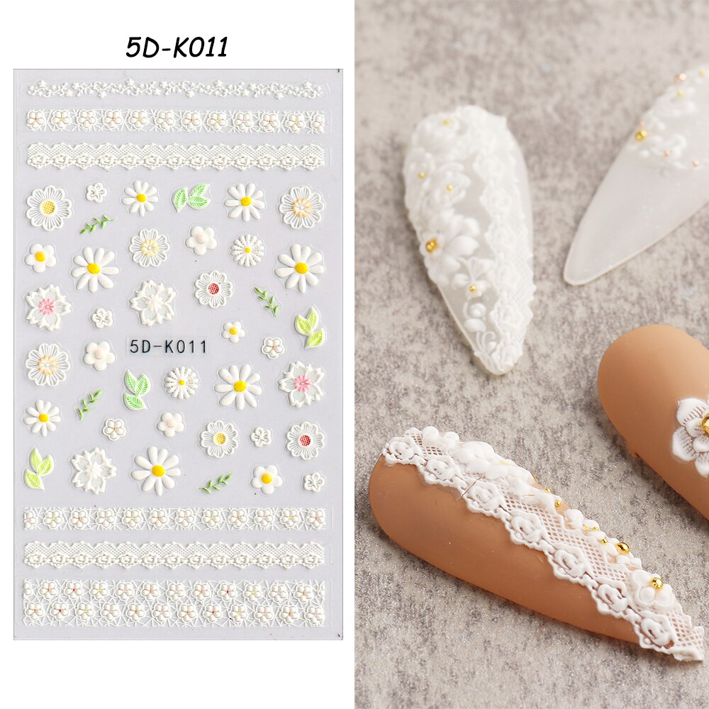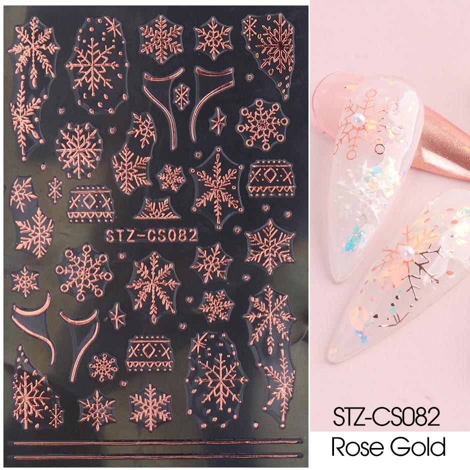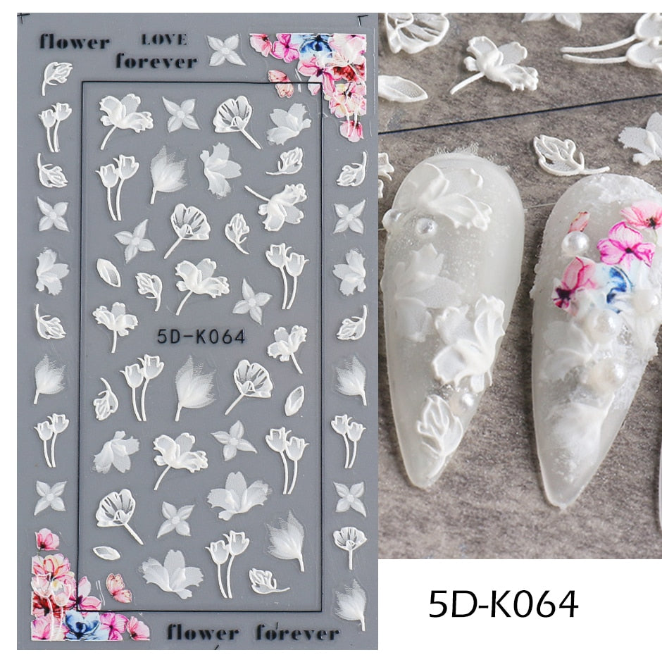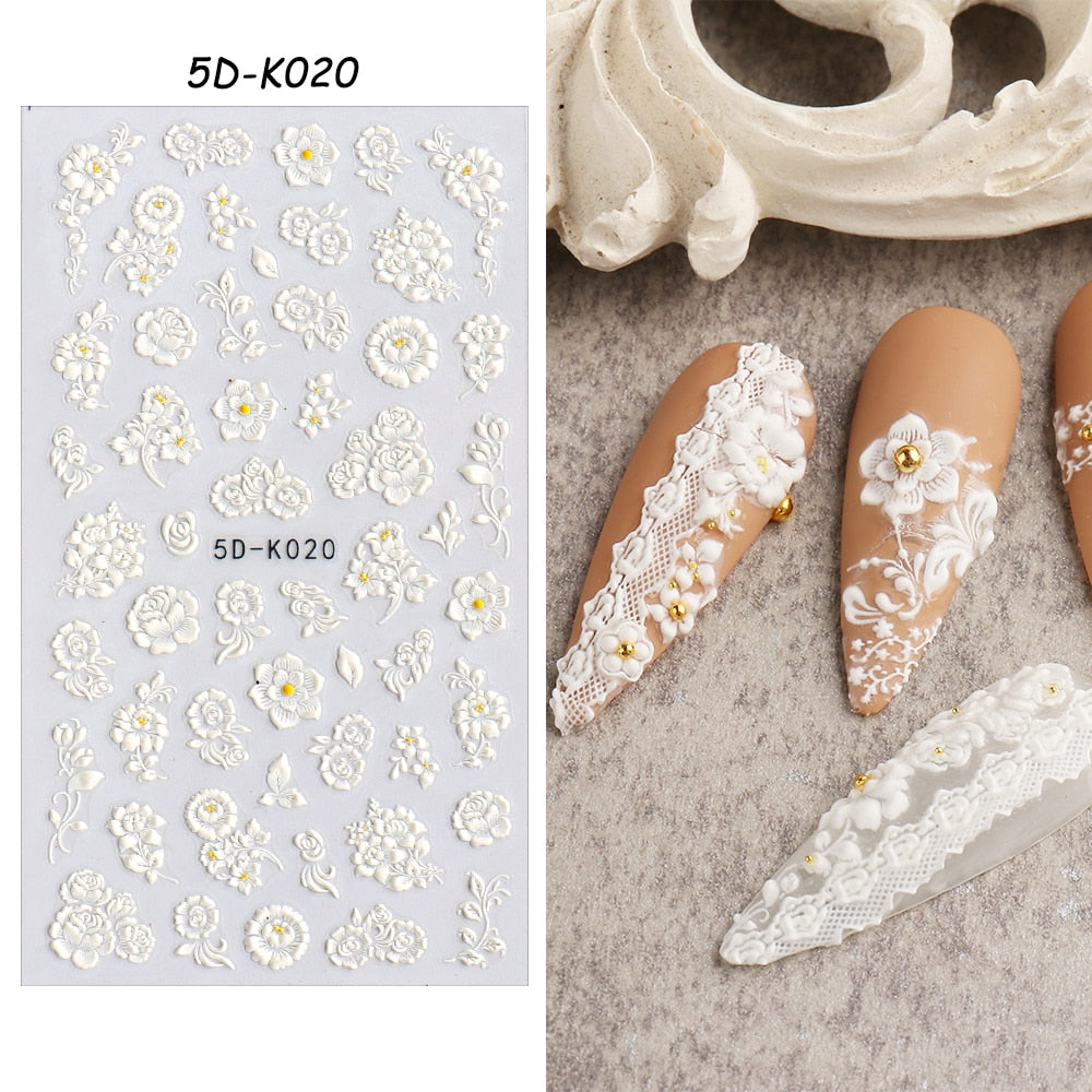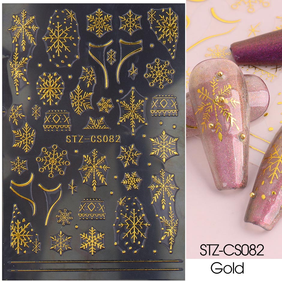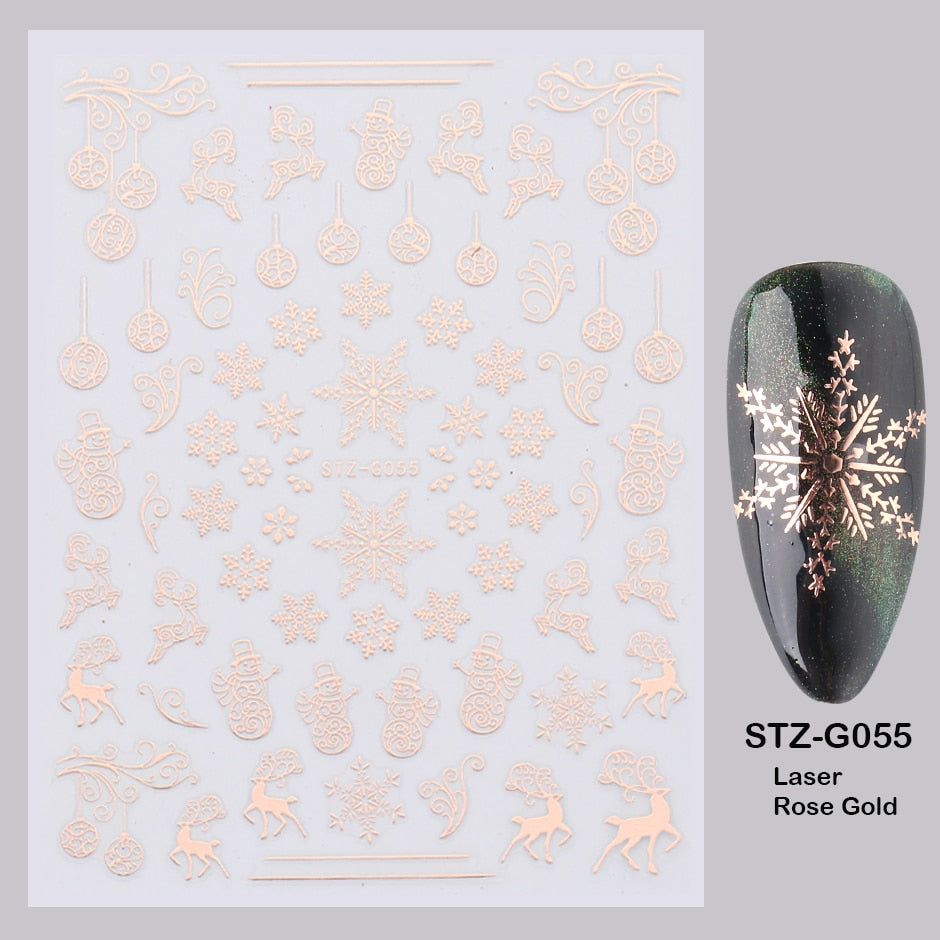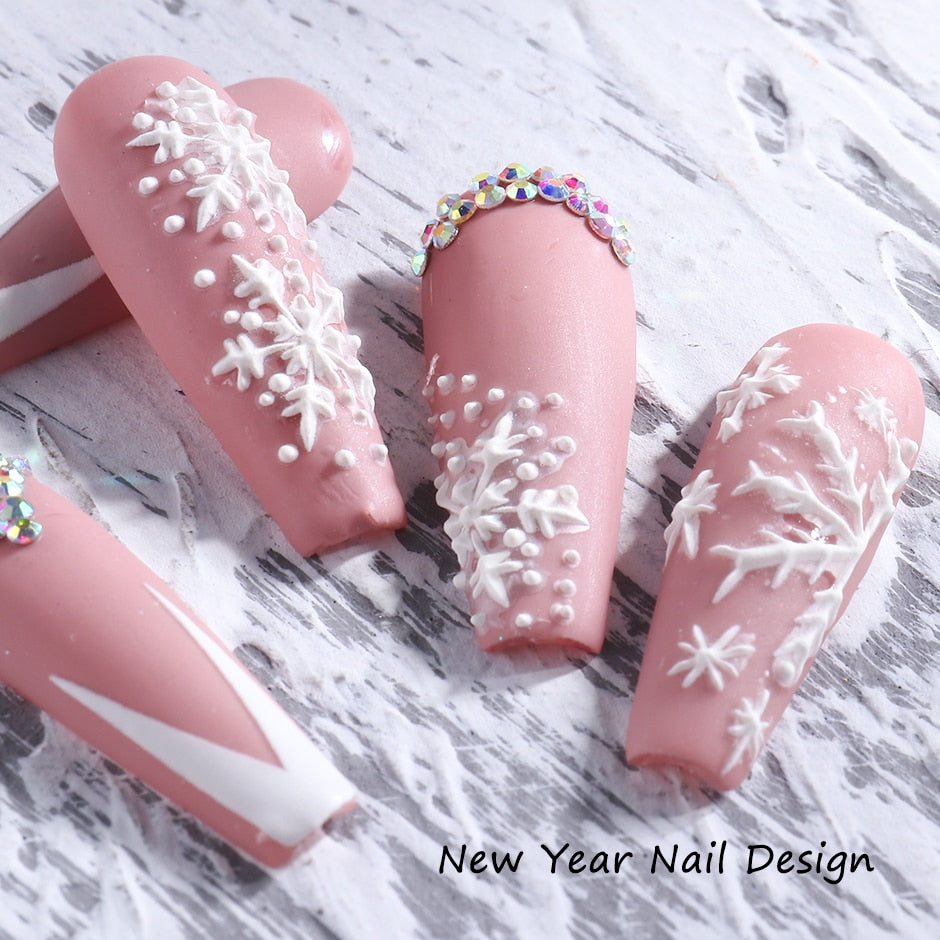 5D White Snowflakes Embossed Sticker Christmas New Year Nail Art Design Winter Charms Flower Manicure Slider Decals CHSTZ5D01-08
