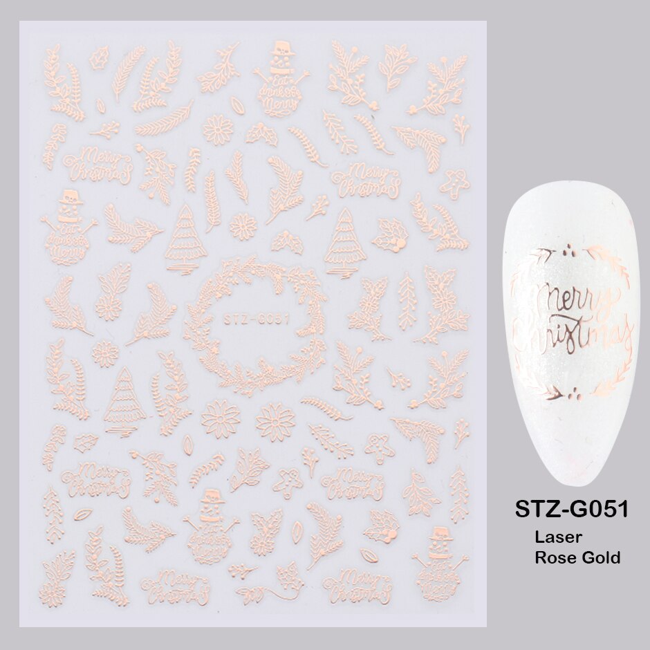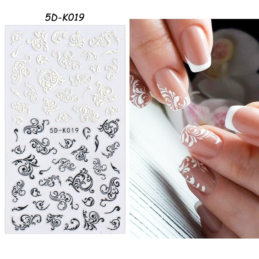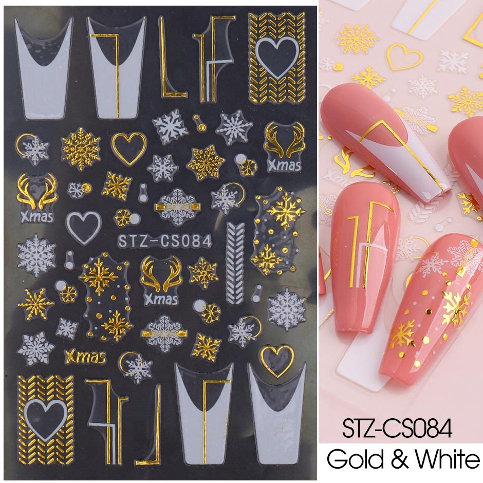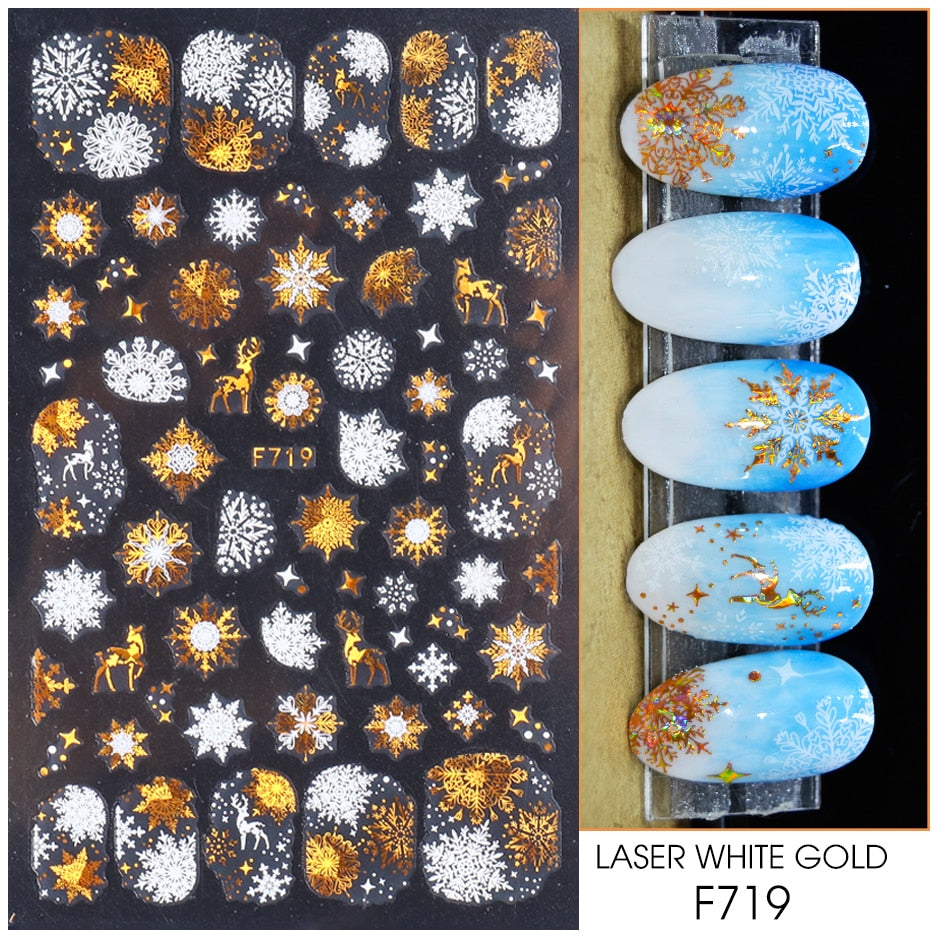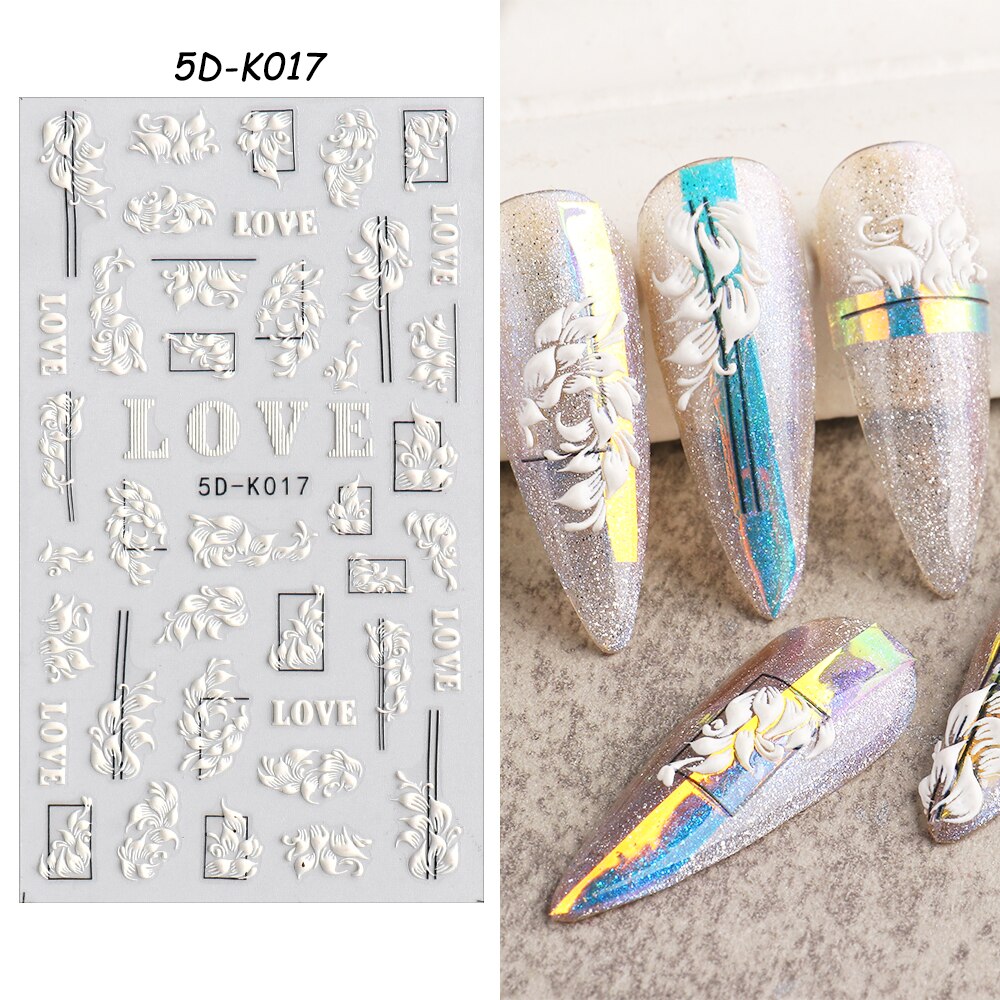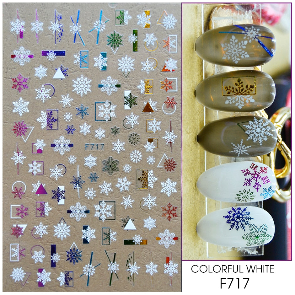 5D White Snowflakes Embossed Sticker Christmas New Year Nail Art Design Winter Charms Flower Manicure Slider Decals CHSTZ5D01-08
