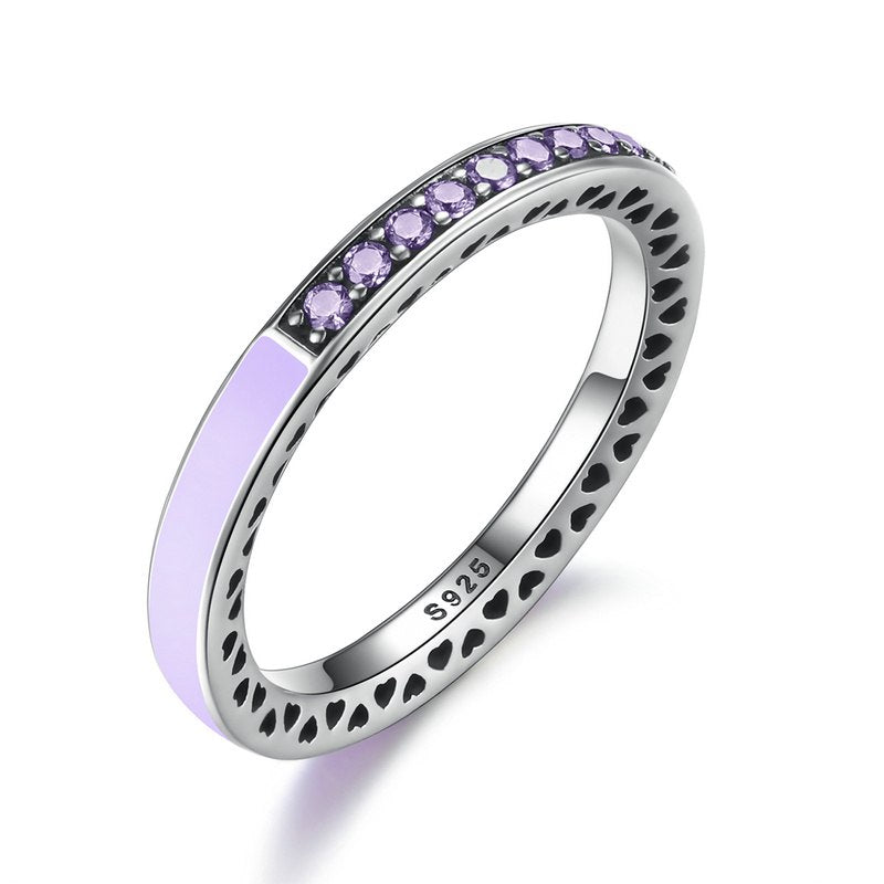 Radiant Hearts Enamel Clear CZ Finger Ring Women Mother Gift