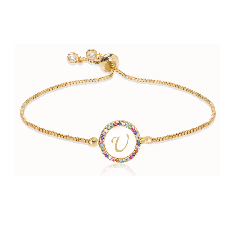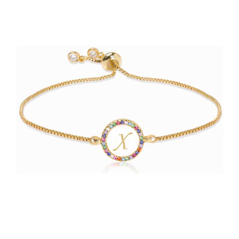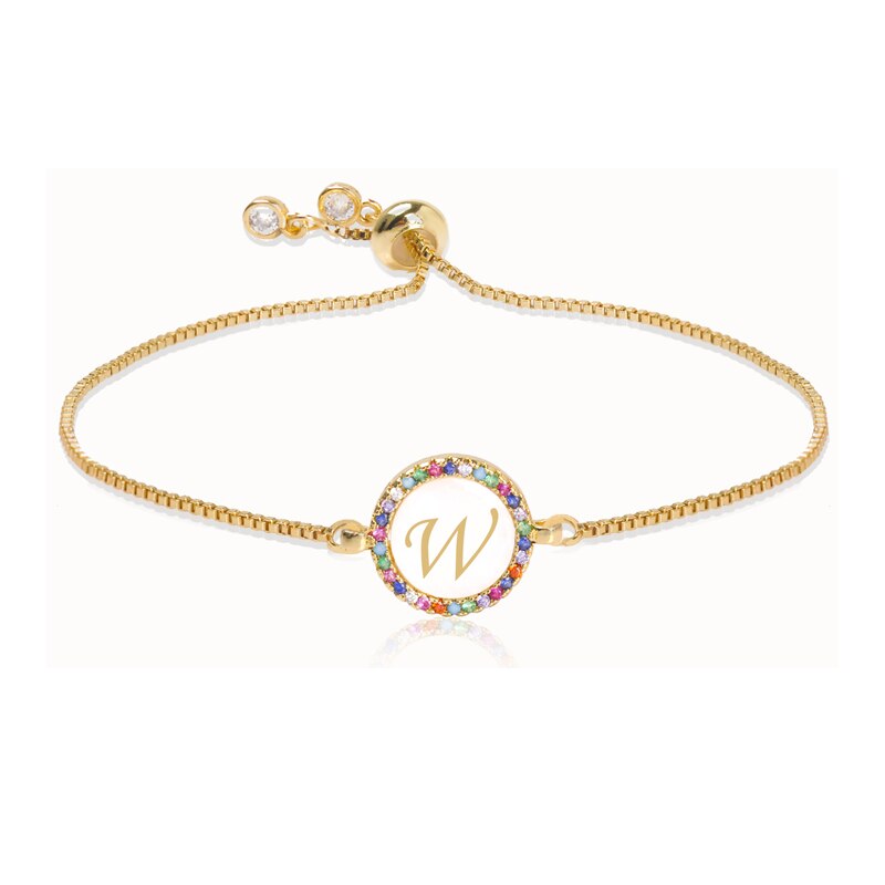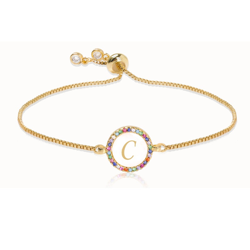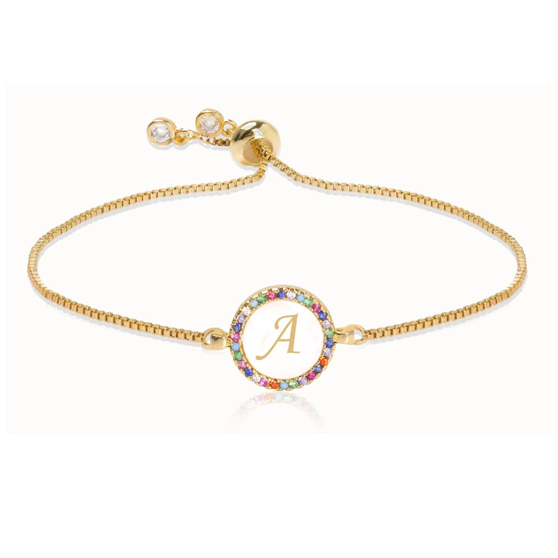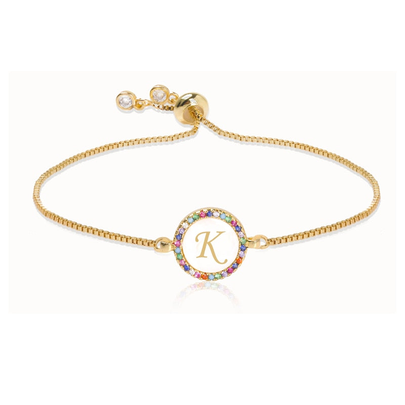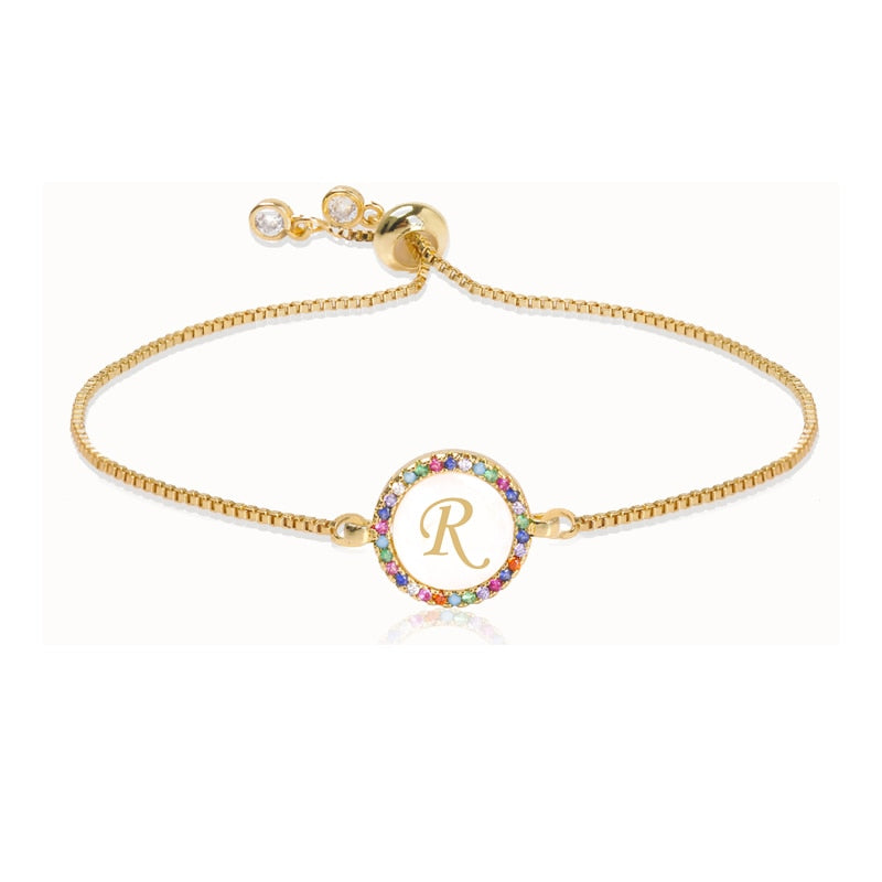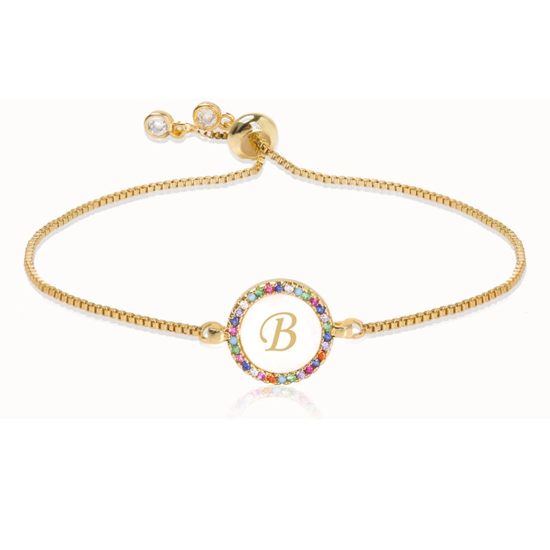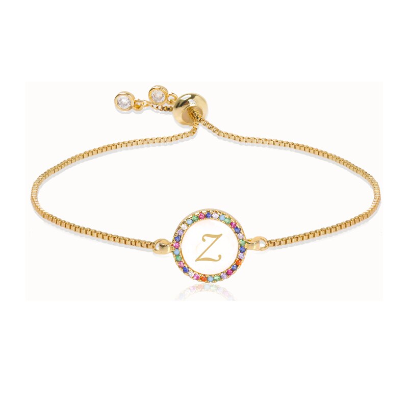 Adjustable Rainbow Zircon 26 Letter Bracelet