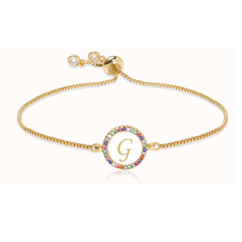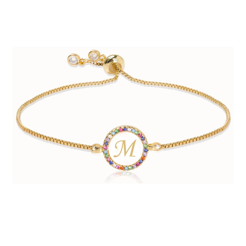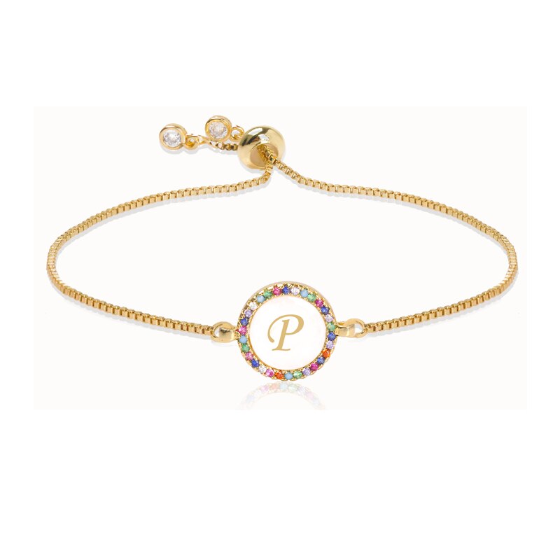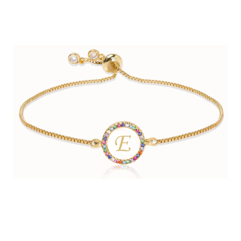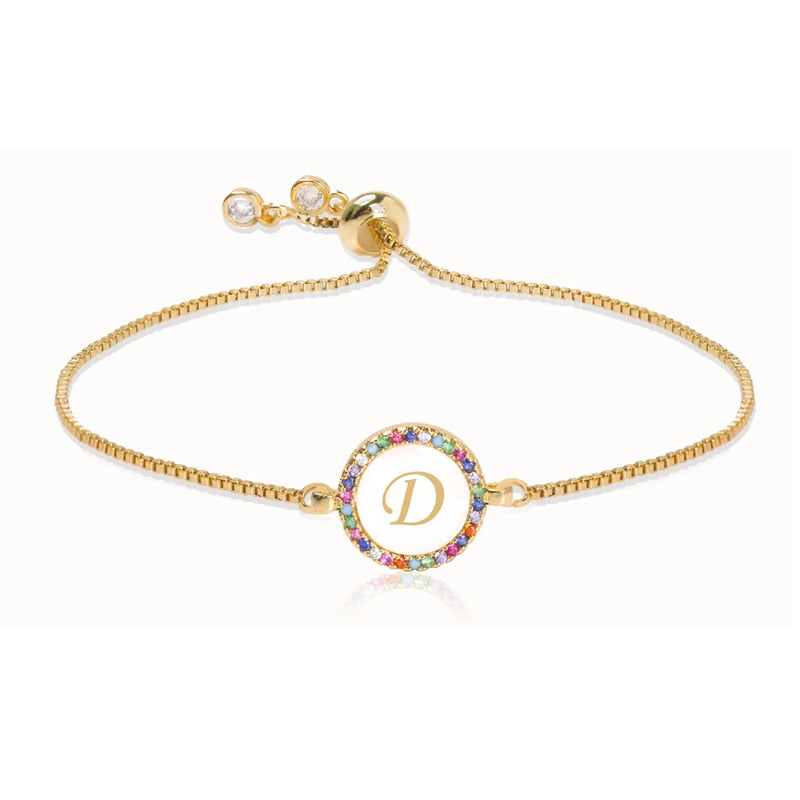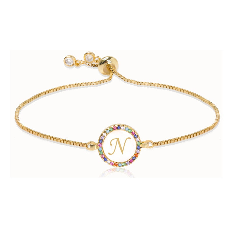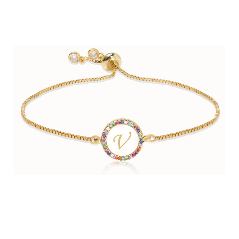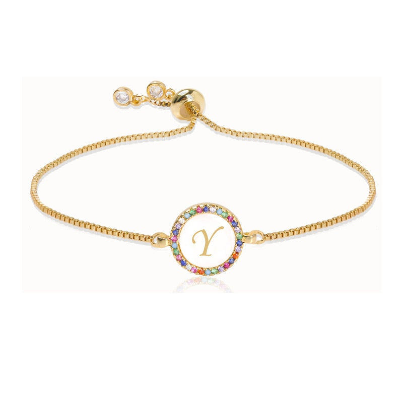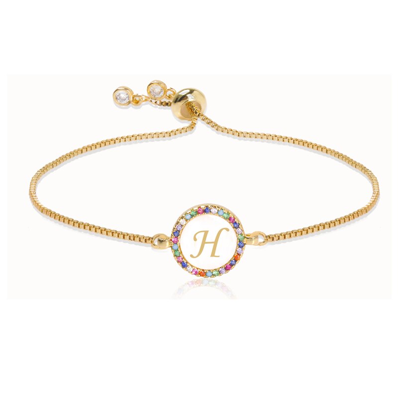 Adjustable Rainbow Zircon 26 Letter Bracelet