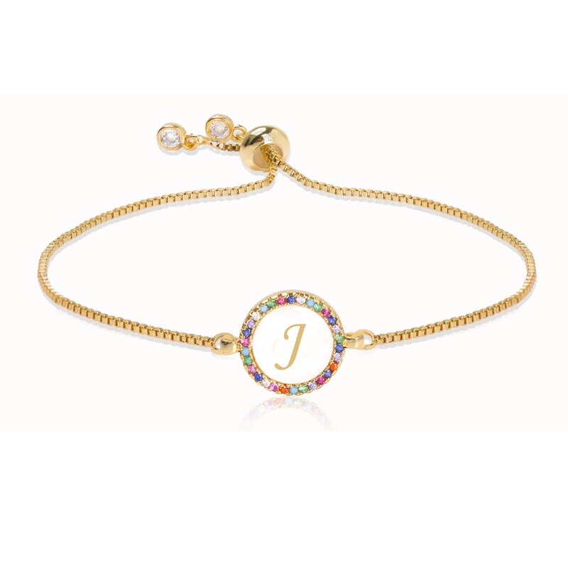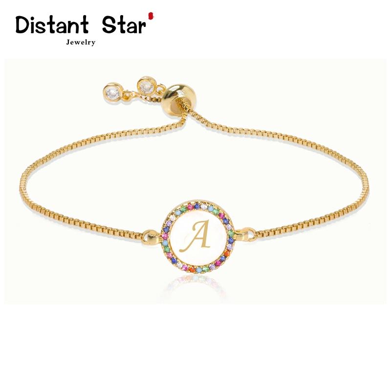 Adjustable Rainbow Zircon 26 Letter Bracelet for Women shell Cz initial Bracelet Femme Snake Chain Jewelry Christmas gifts