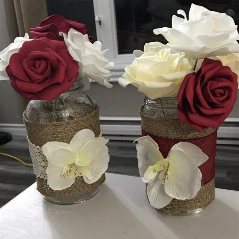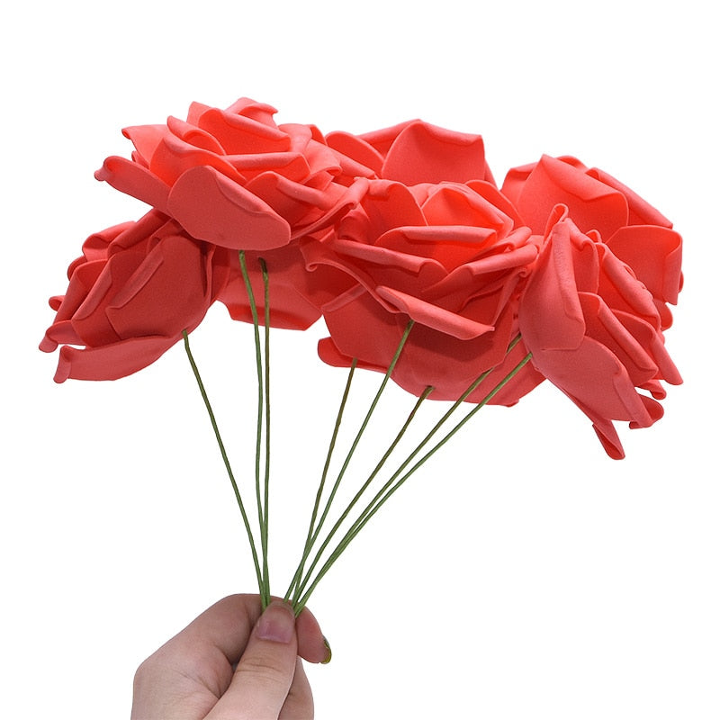 20PCS/lot 8cm Artificial Flowers PE Foam Rose Fake Flowers Head for Home Wedding Flower Bride Bouquet Decoration Valentine Gift