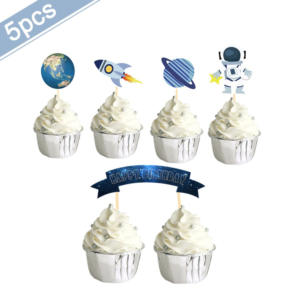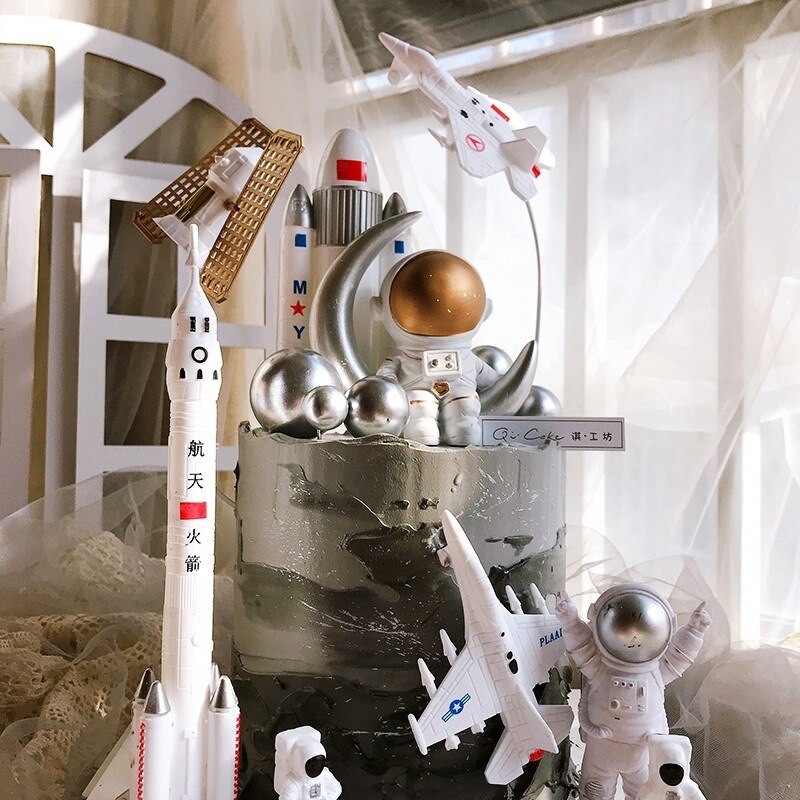 Astronaut Cake Decoration Planets Cake Topper Spaceman Baking Ornaments For Kid Boy Universe Outer Space Birthday Party Supplies