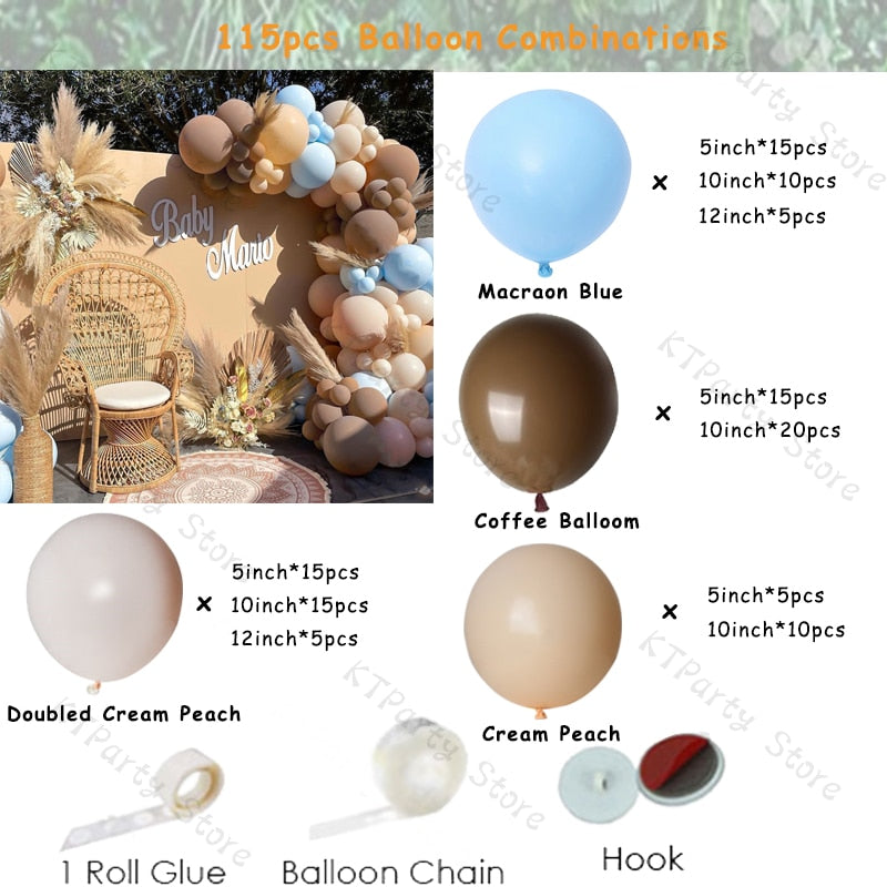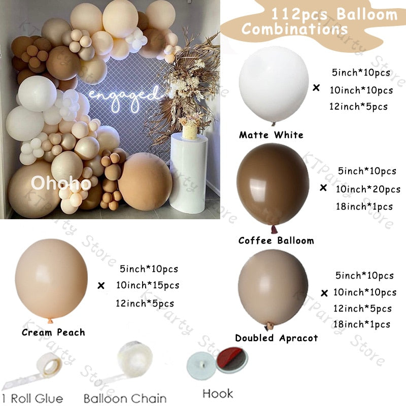 112pcs Ballons Garland Arch Kit Blush Coffee Matte White Ballon Wedding Decoration Gender Reveal Birthday Baby Shower Decor