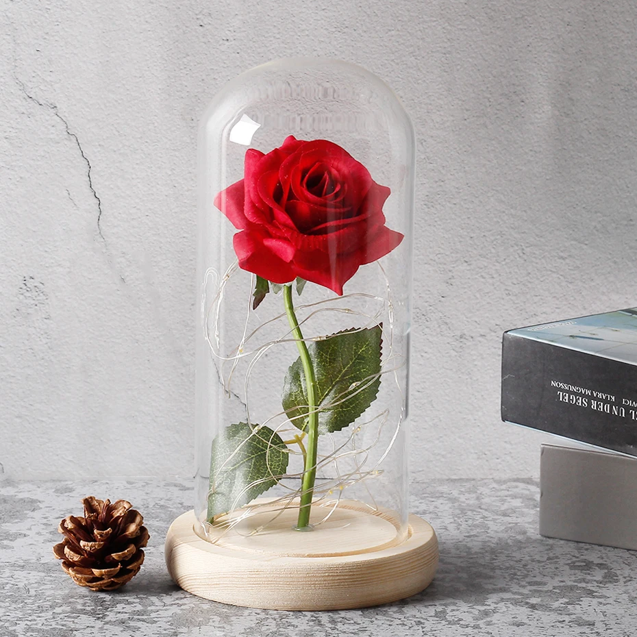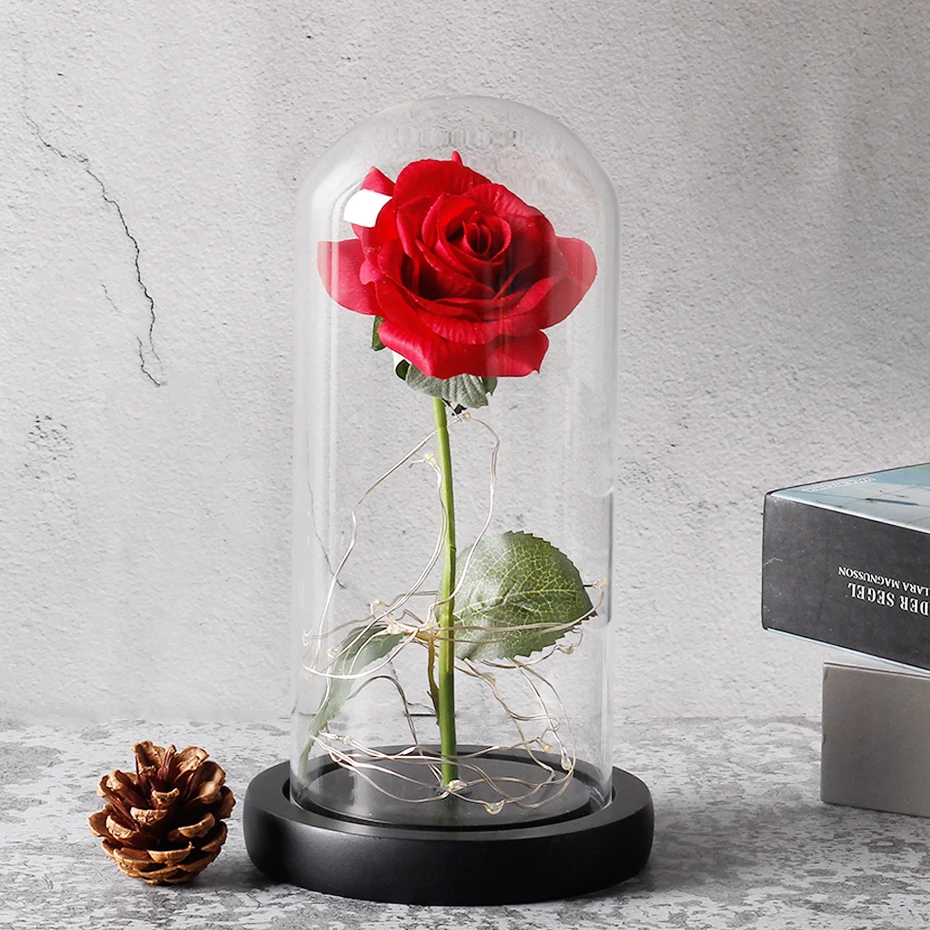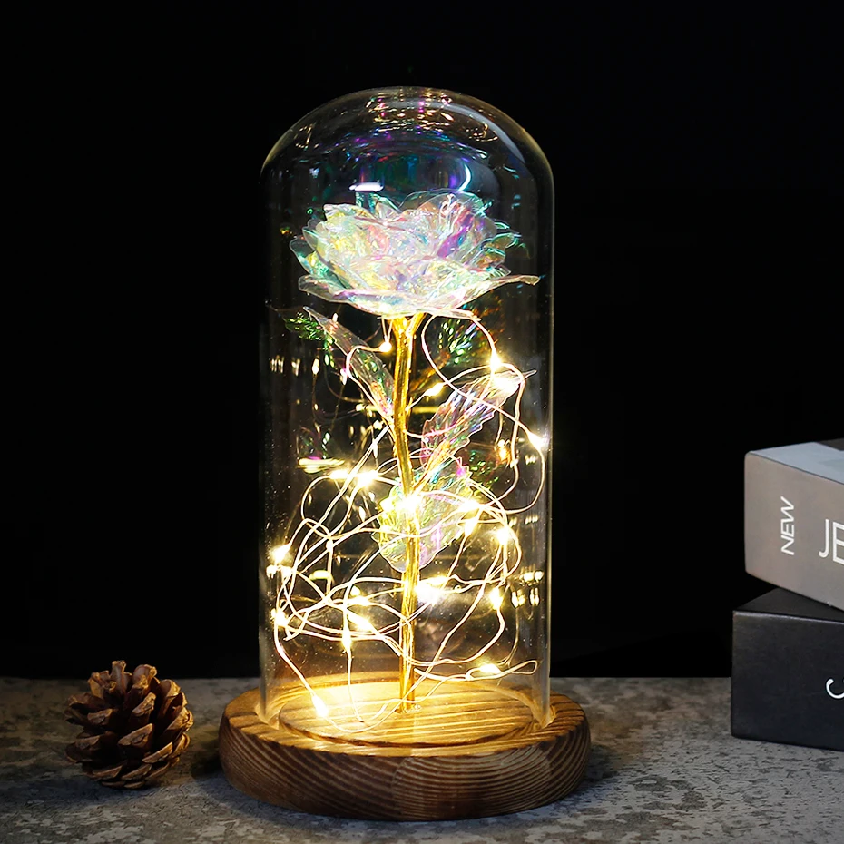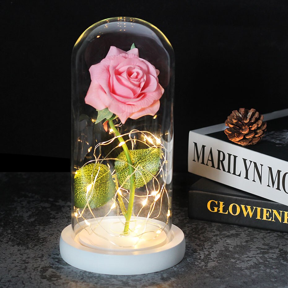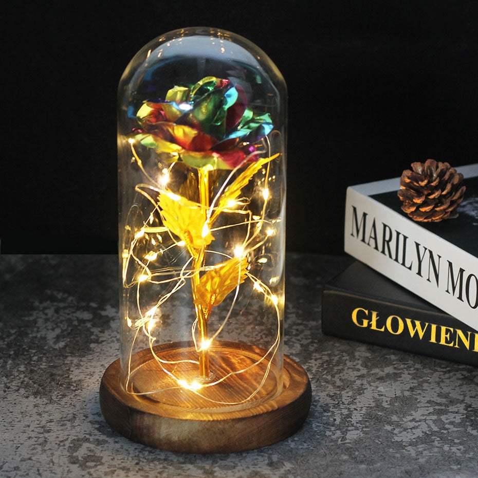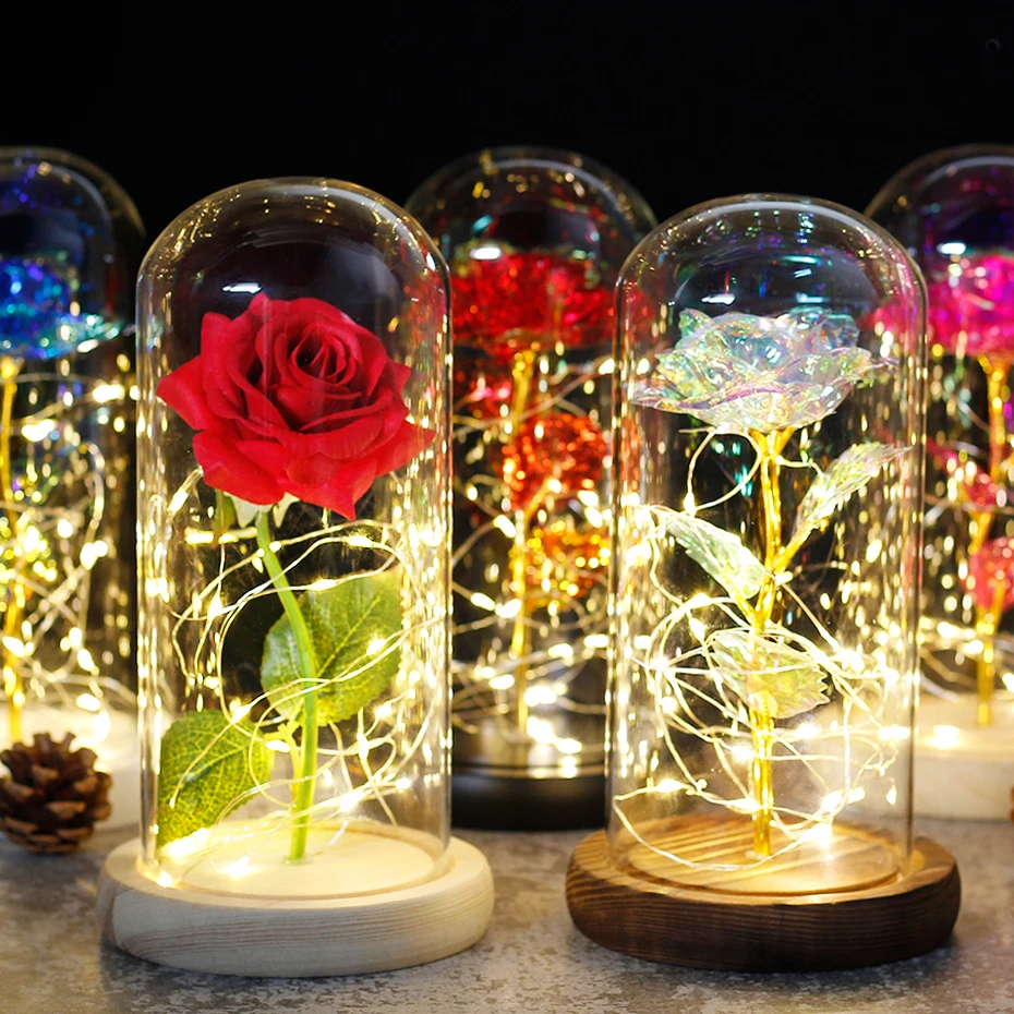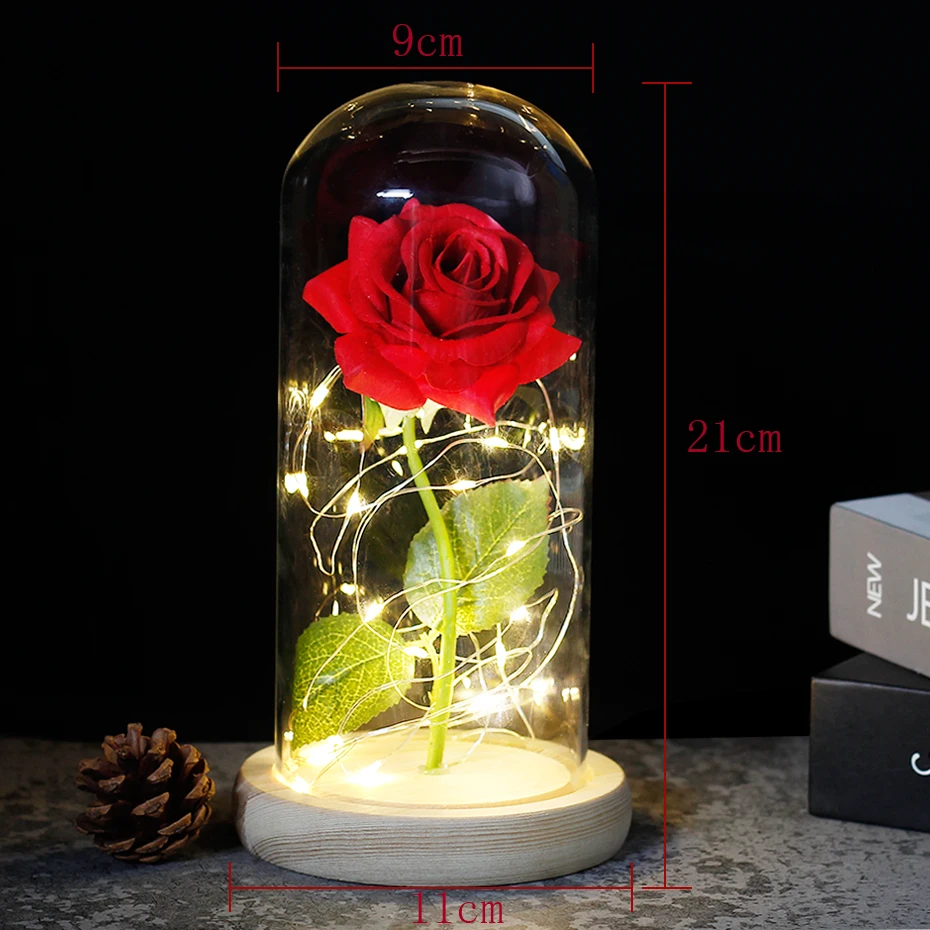 Beauty And The Beast Mother's Day Rose LED Enchanted Rose Eternal Flower Lights In Dome For Christmas Valentine's Day Gift
