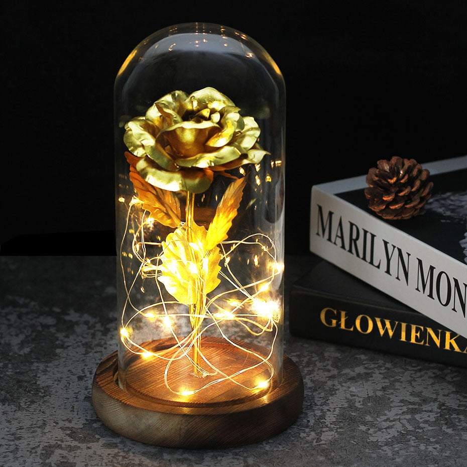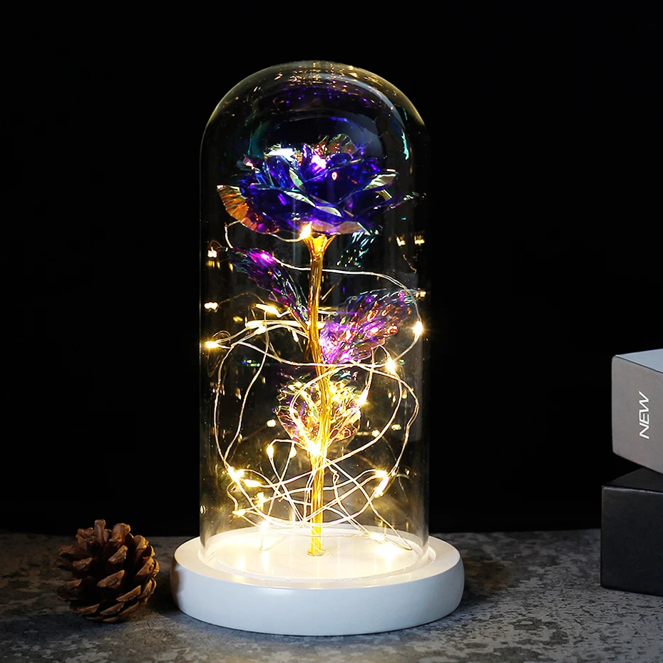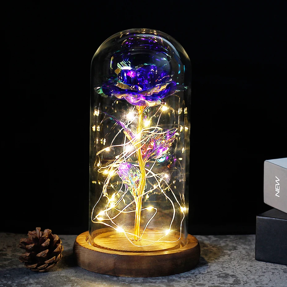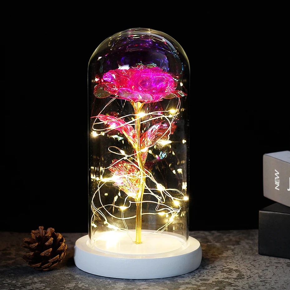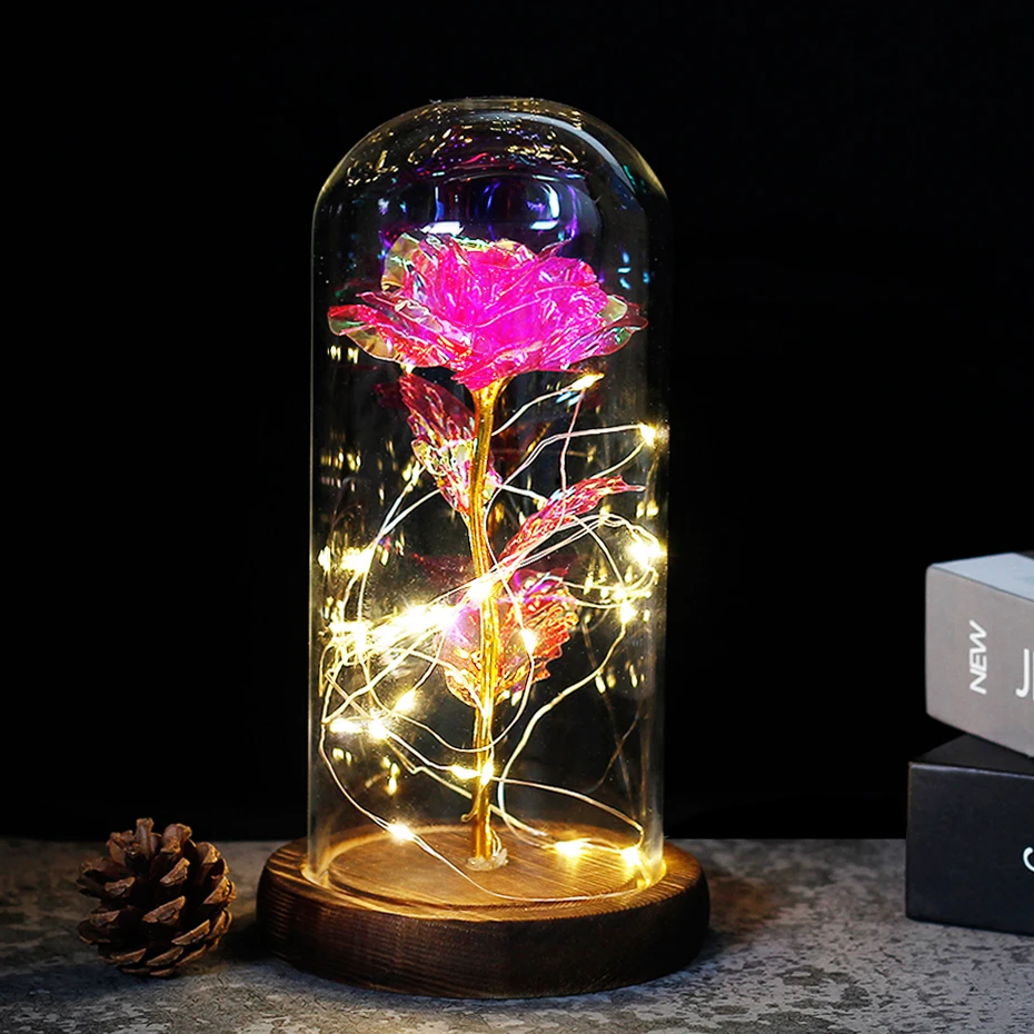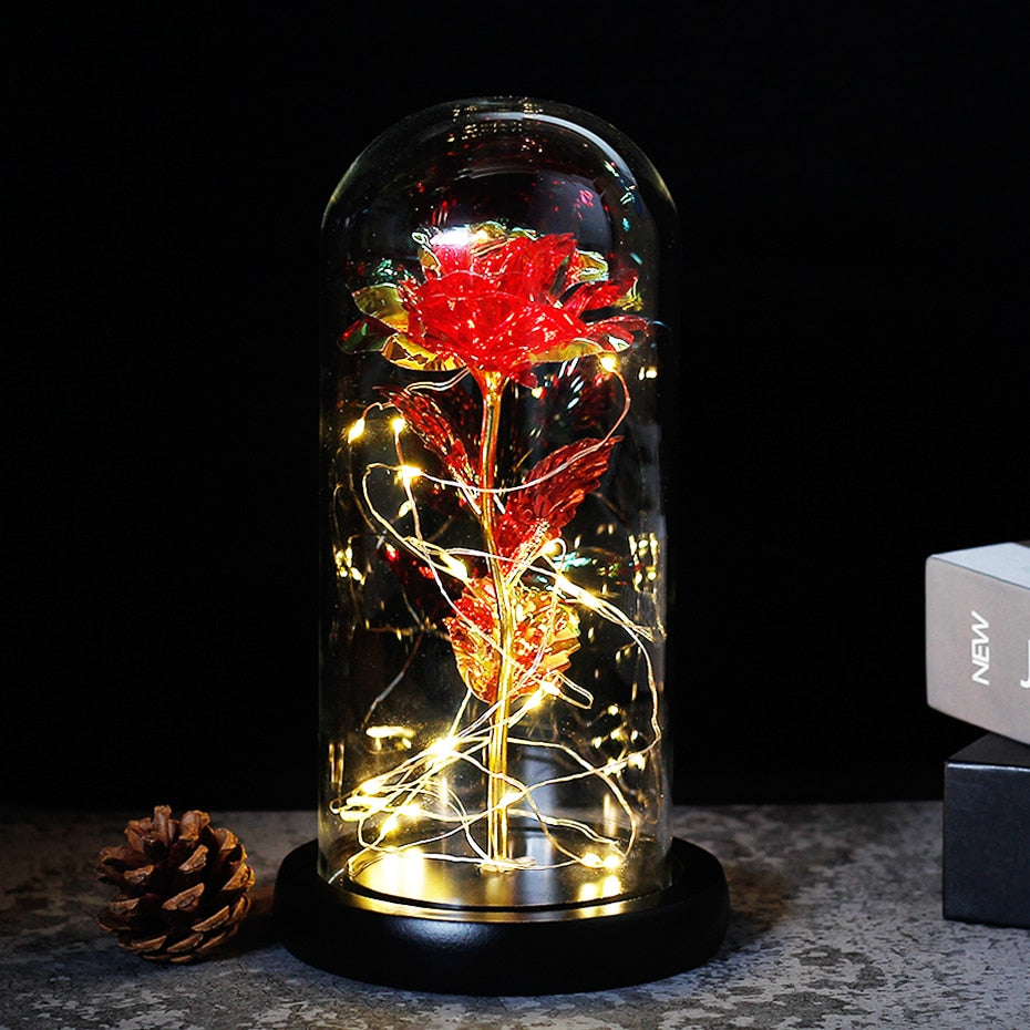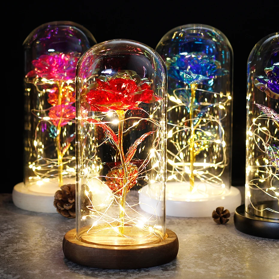 Beauty And The Beast Mother's Day Rose LED Enchanted Rose Eternal Flower Lights In Dome For Christmas Valentine's Day Gift