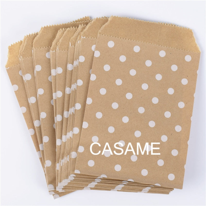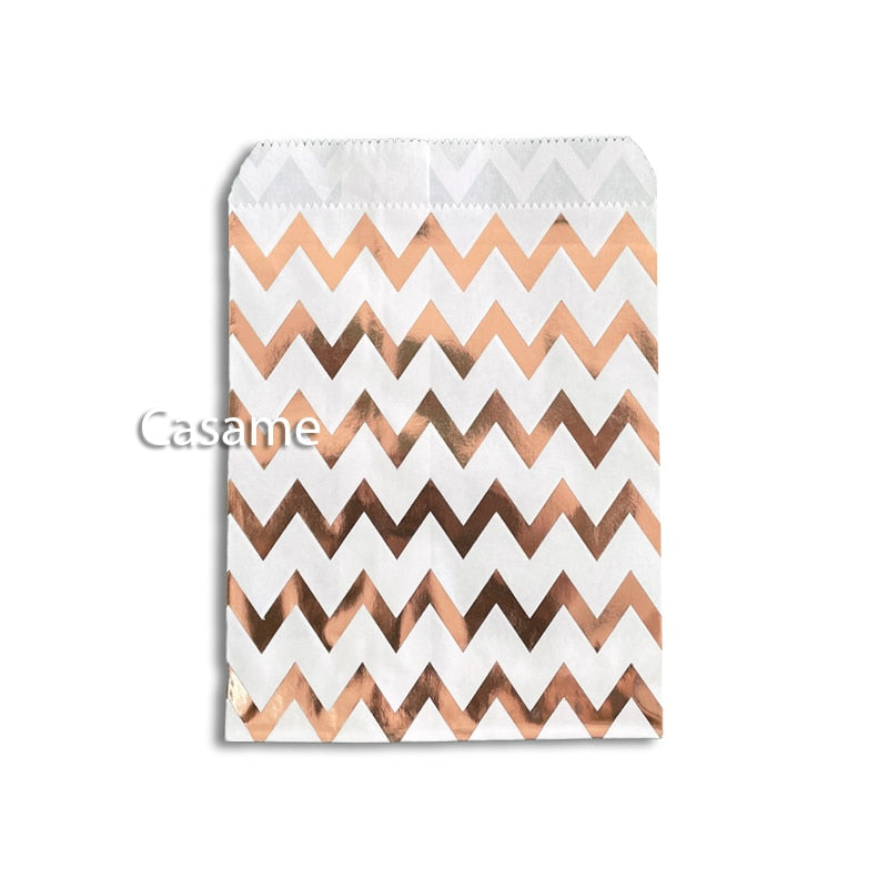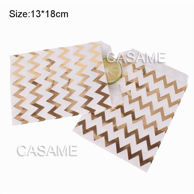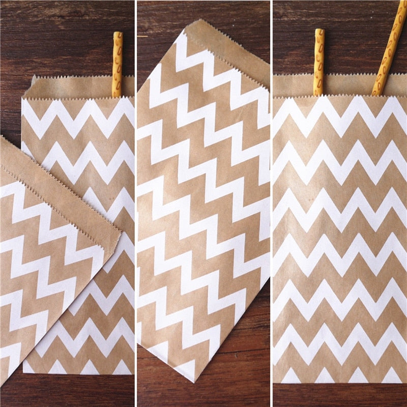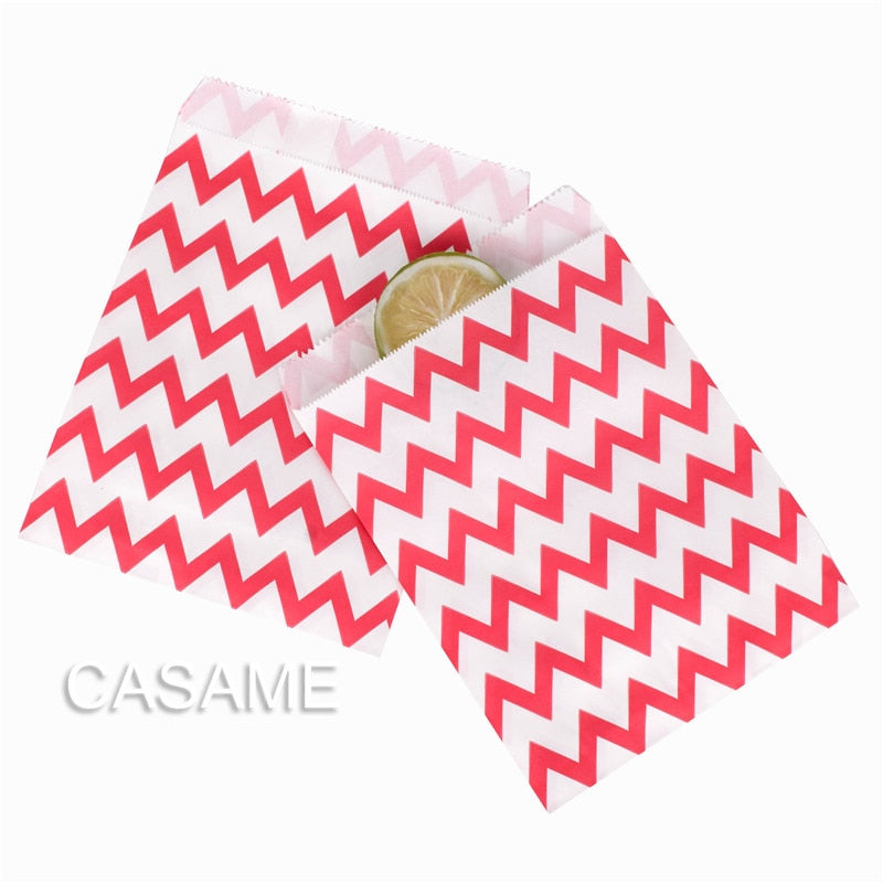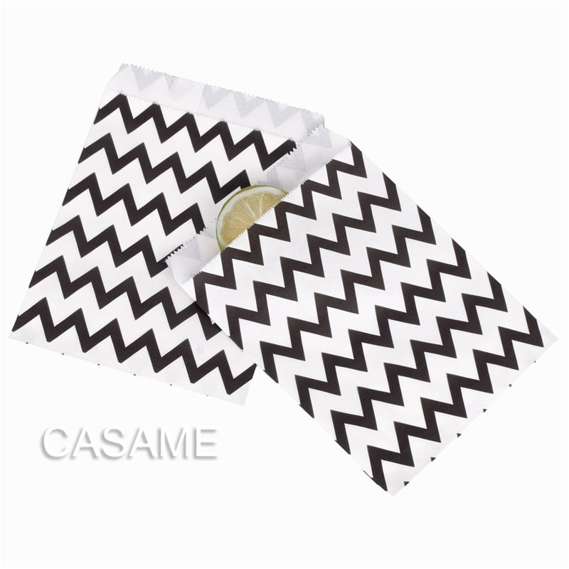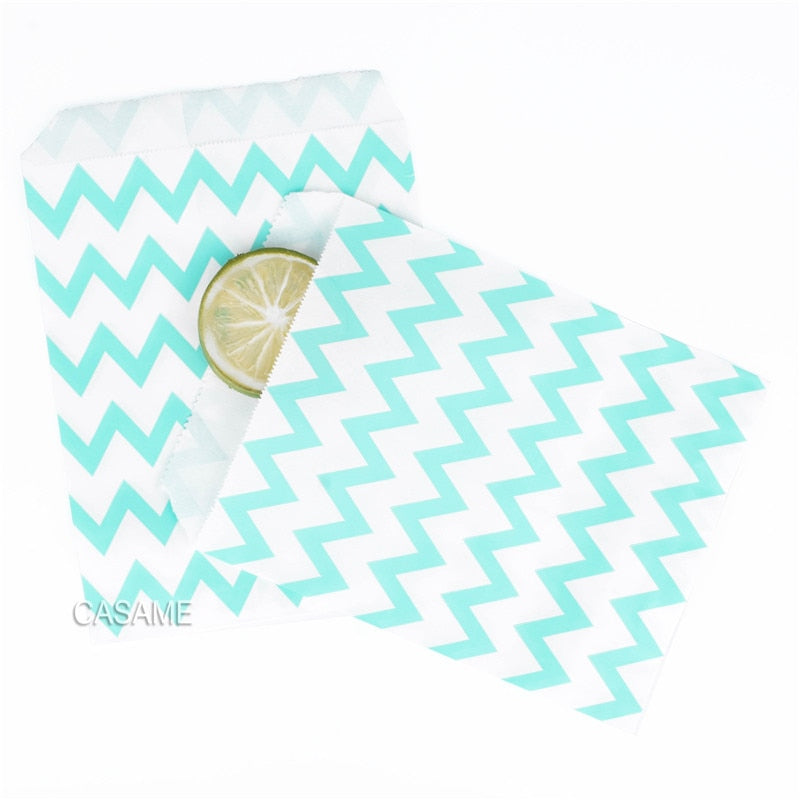 25/50/100pc Bio-degradable treat candy bag Party Favor Paper Bags Chevron Polka Dot Stripe Print Paper craft Bakery Bag