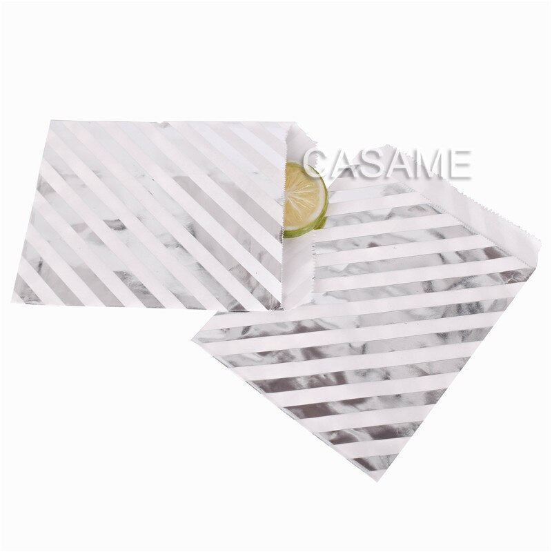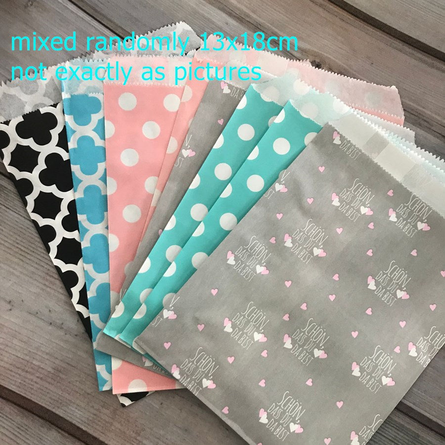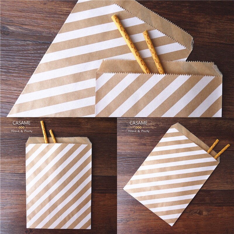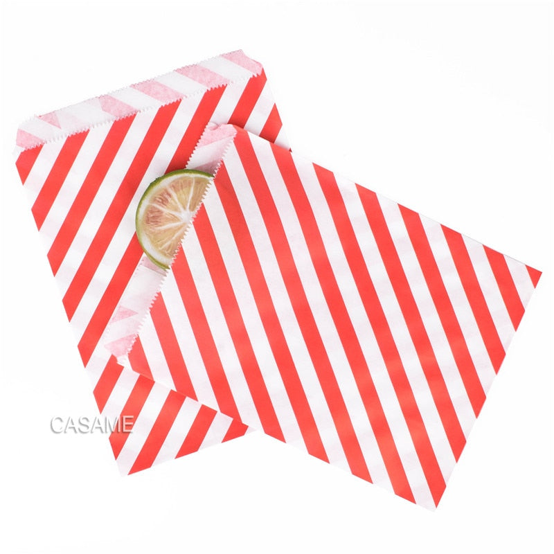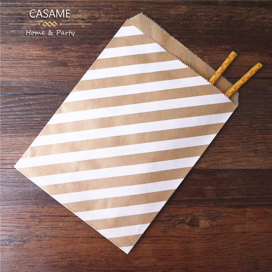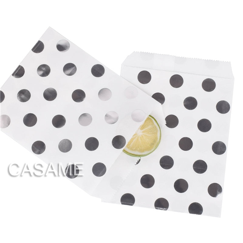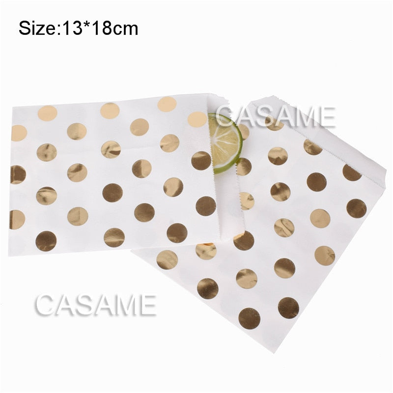 25/50/100pc Bio-degradable treat candy bag Party Favor Paper Bags Chevron Polka Dot Stripe Print Paper craft Bakery Bag