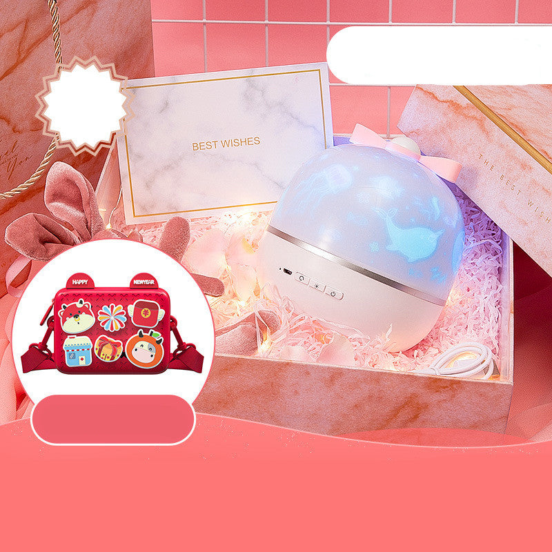 8 styles: DIY trendy small cross bag (red) + dream projection lamp luxury gift box + gift bag + can write greeting cards