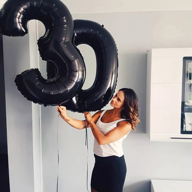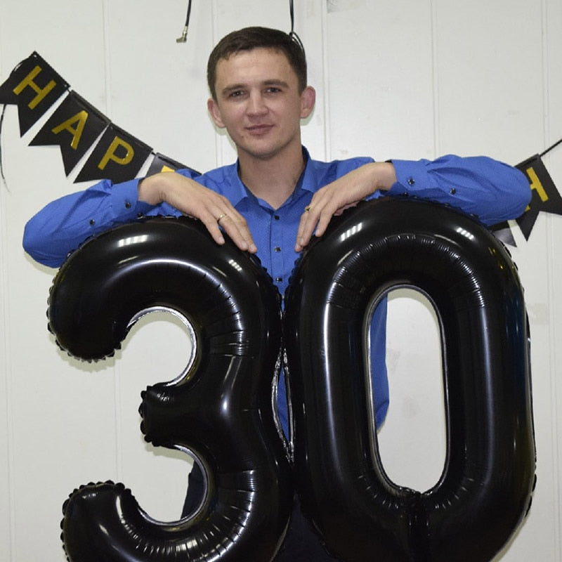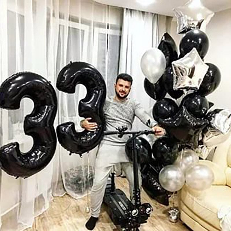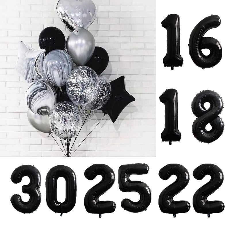 2pcs 40Inch Black Agate Balloon Banner 18 25 30 40 70 Birthday Party Decoration Adult Birthday Letter Number Foil Balloons Globo