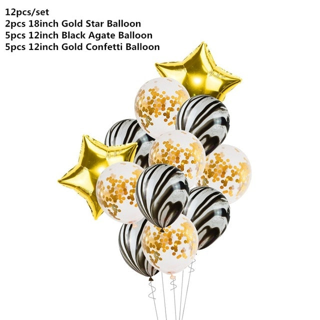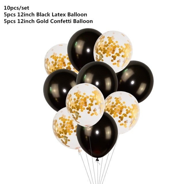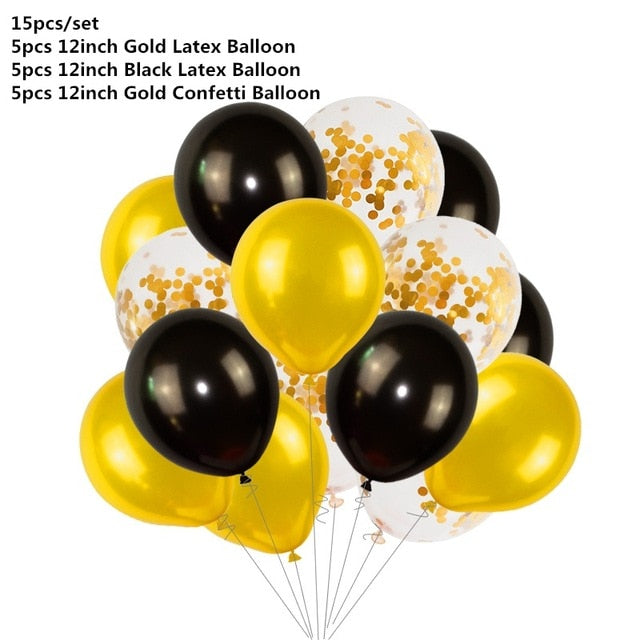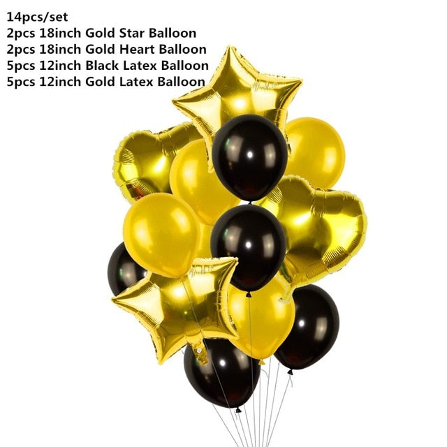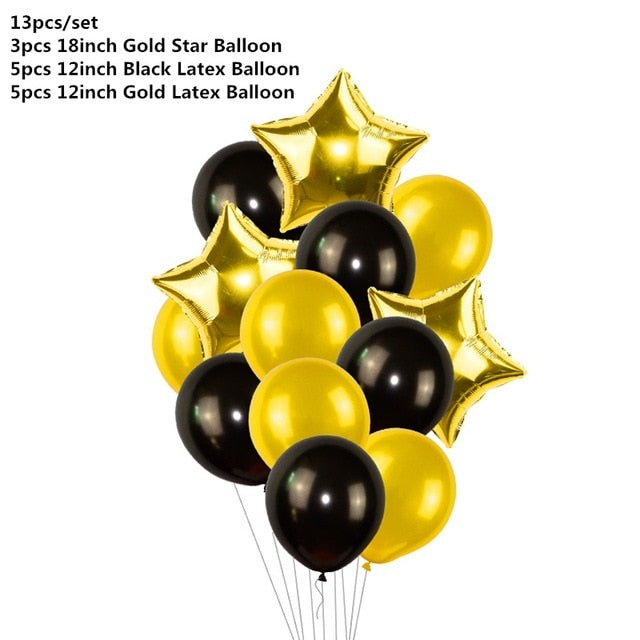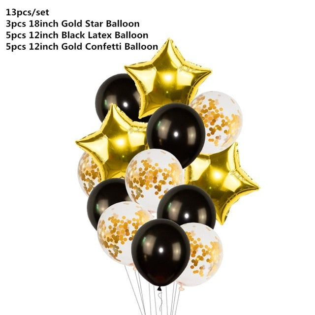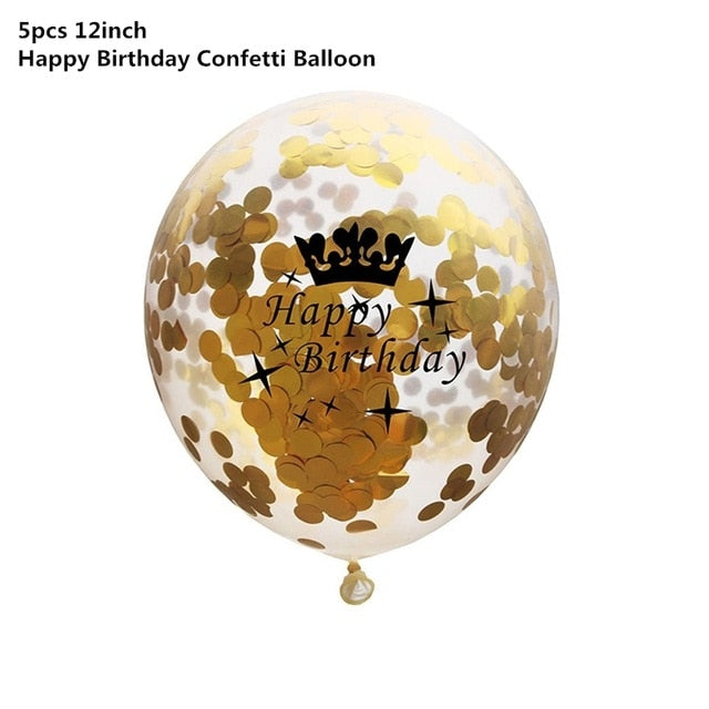 Black Gold Happy Birthday Banner Balloons Helium Number Foil Balloon for Baby Boy Kids Adult 18 30 Birthday Party Decorations