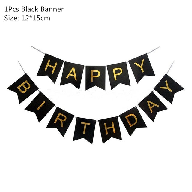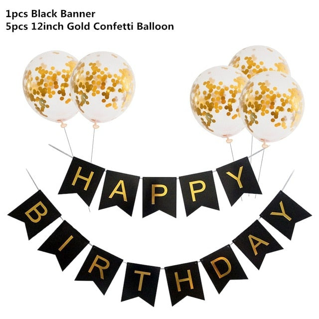 Black Gold Happy Birthday Banner Balloons
