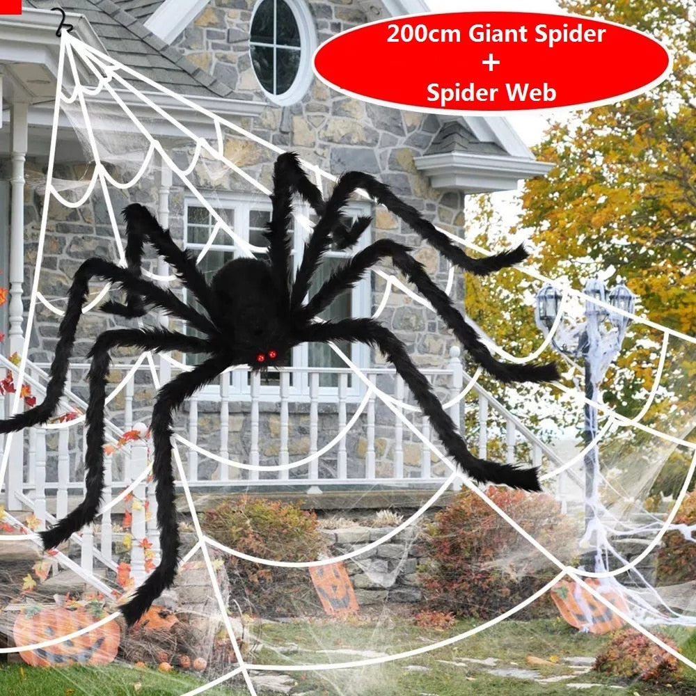 150/200cm Black Scary Giant Spider Huge Spider Web Halloween Decoration Props Haunted House Holiday Outdoor Giant Decoration