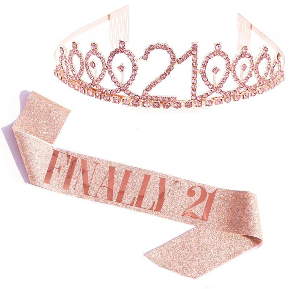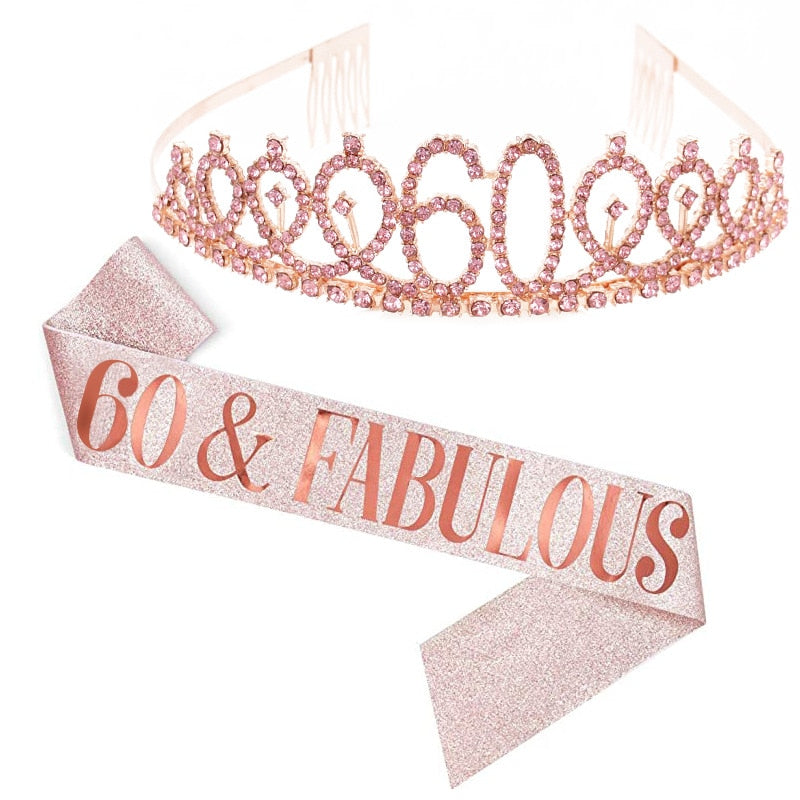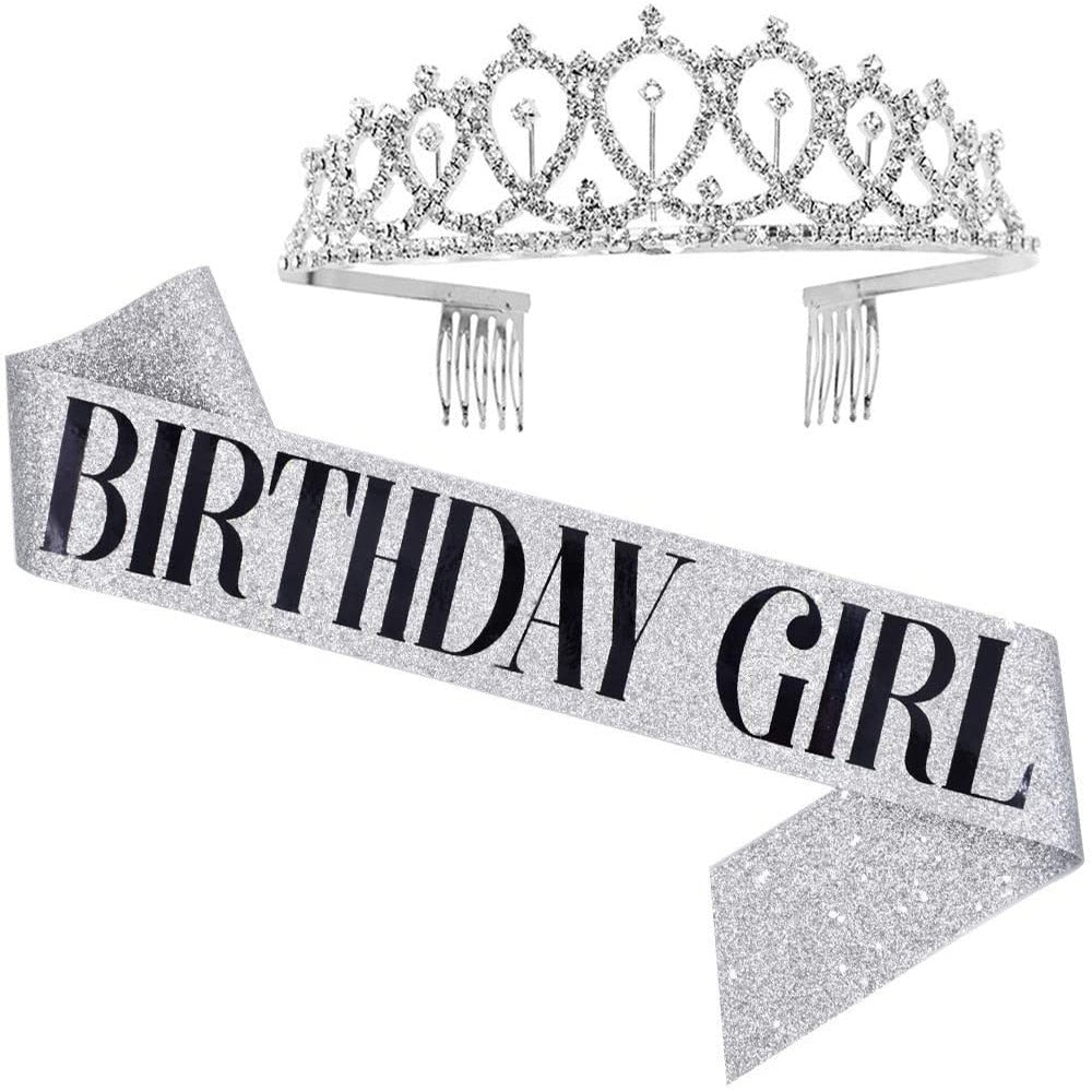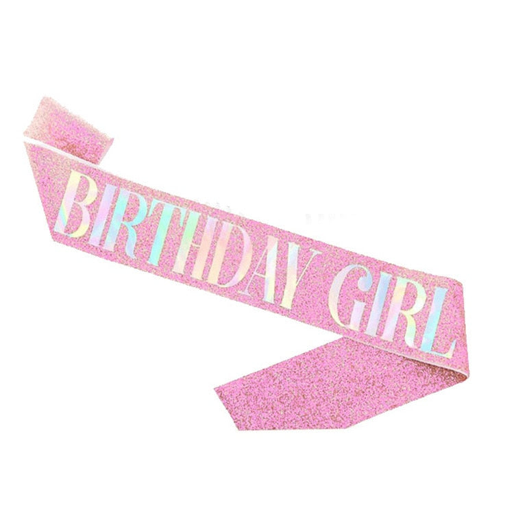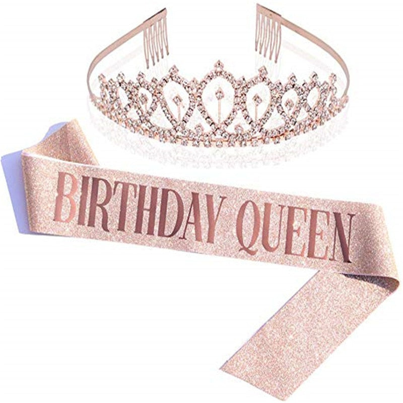 Bling Rhinestone Crystal Crown Tiara Birthday Anniversary Decoration Happy 18 21 30 40 50th Birthday Satin Sash Party Supplies