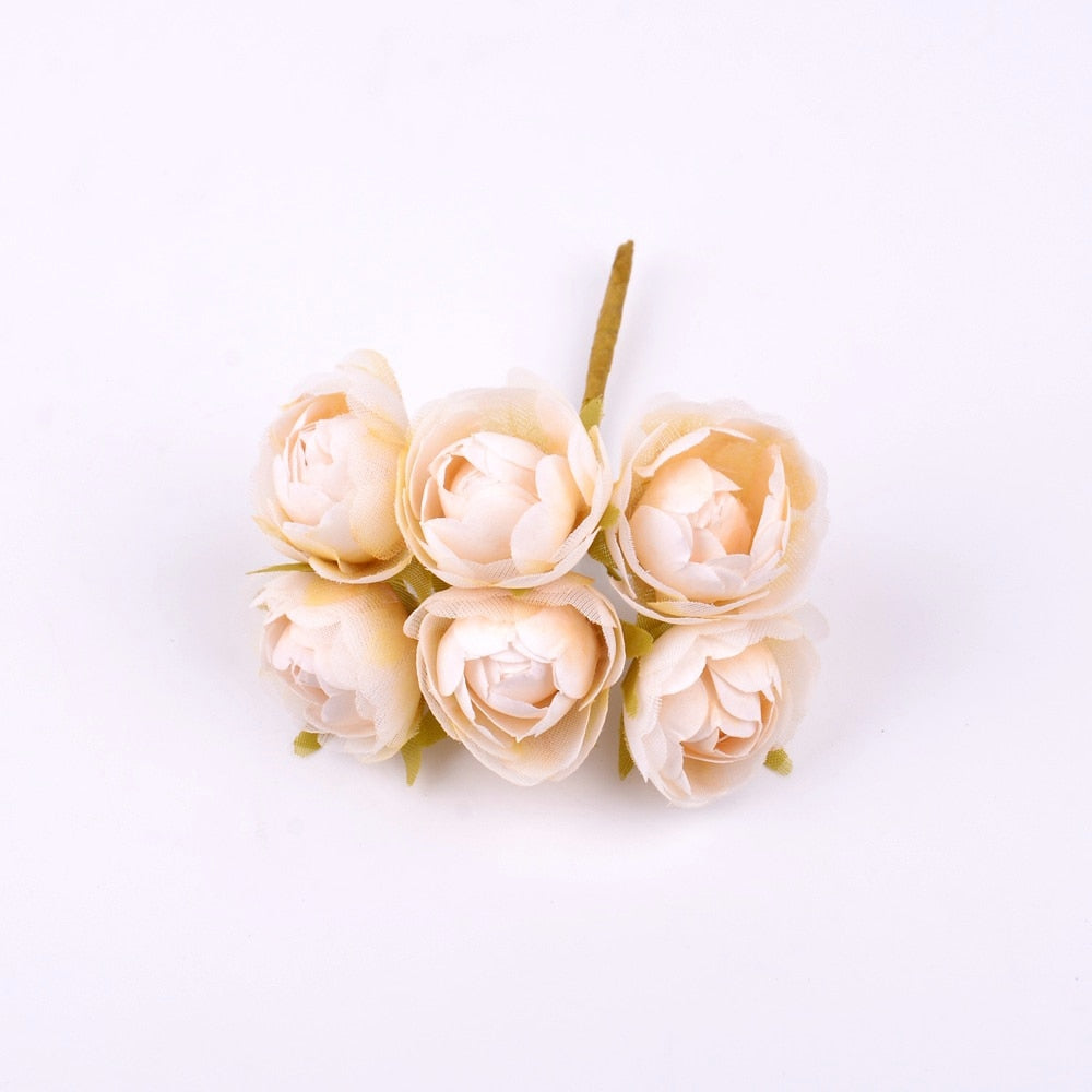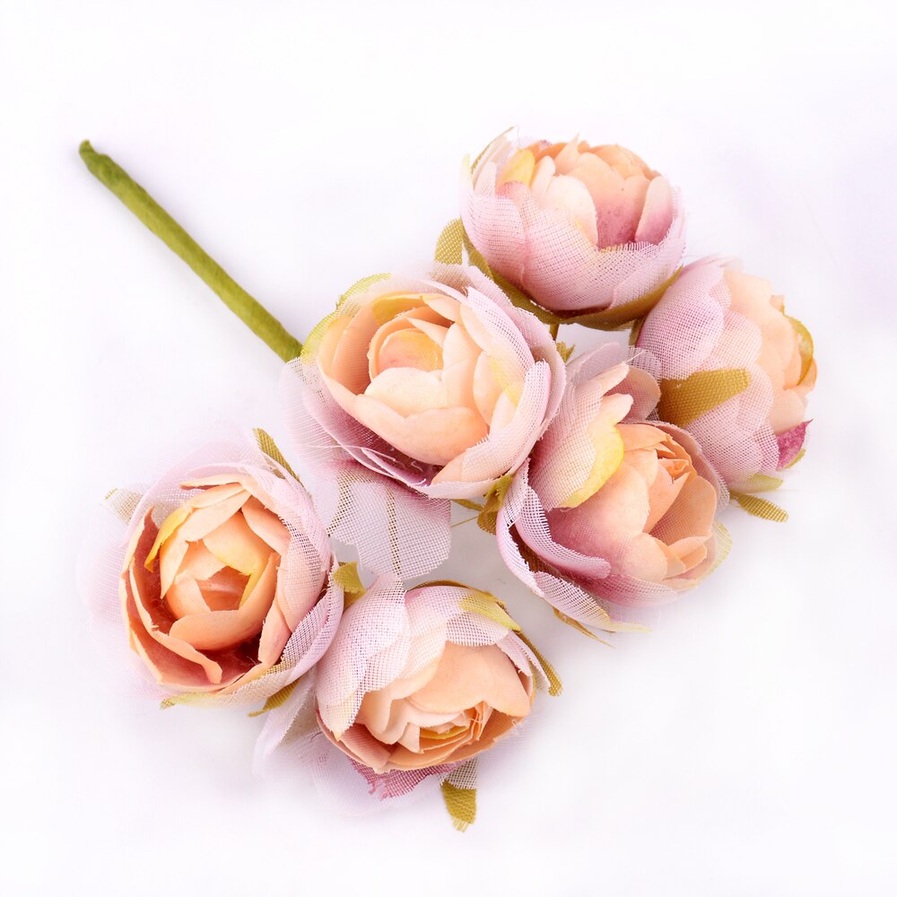 6pcs new bottom gauze rose bouquet artificial flower For wedding home Christmas decoration DIY wreath scrapbook gift box