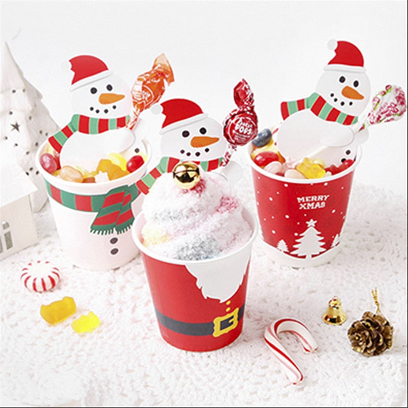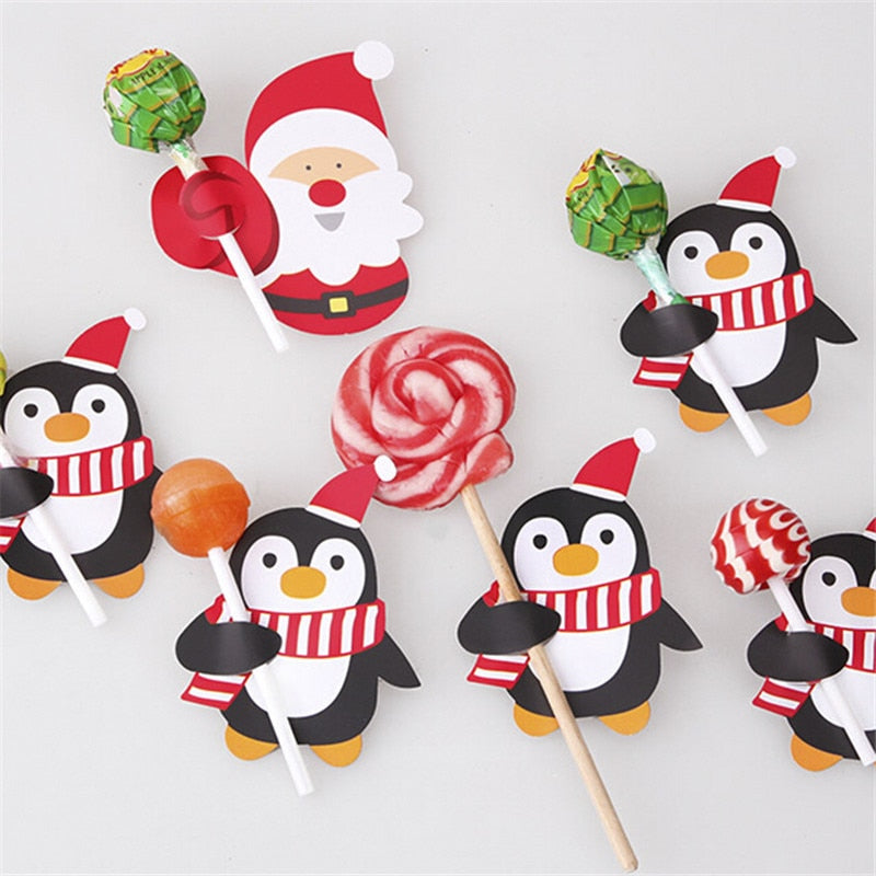 50Pcs/Lot Cartoons Santa Claus Paper Lollipop Cards DIY Lollipop Gift Package Decor Christmas Decoration Navidad New Year