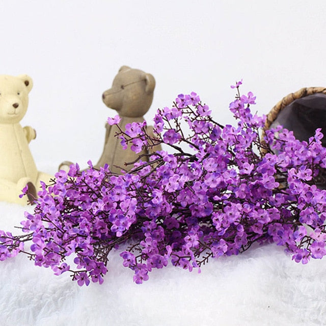 Cherry Blossoms Artificial Flowers Baby's Breath Gypsophila Fake Flowers DIY Wedding Decoration Home Bouquet Faux Flowers Branch