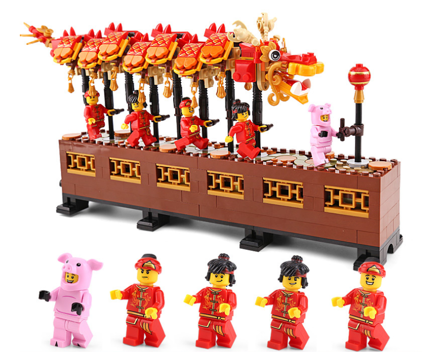 Chinese Dragon Dance Set Building Blocks Bricks Assembly Kids Toys New Year Gift