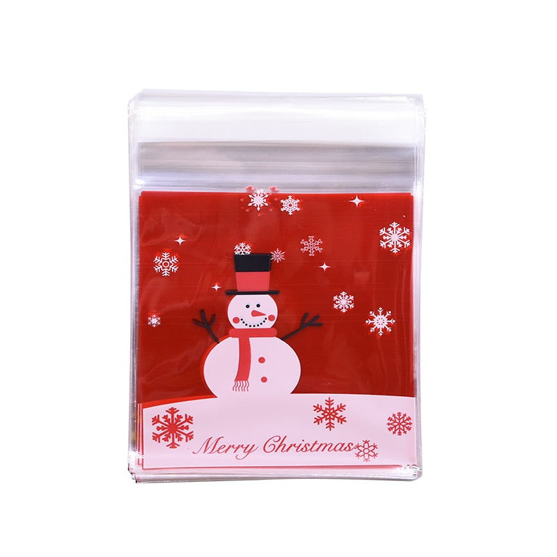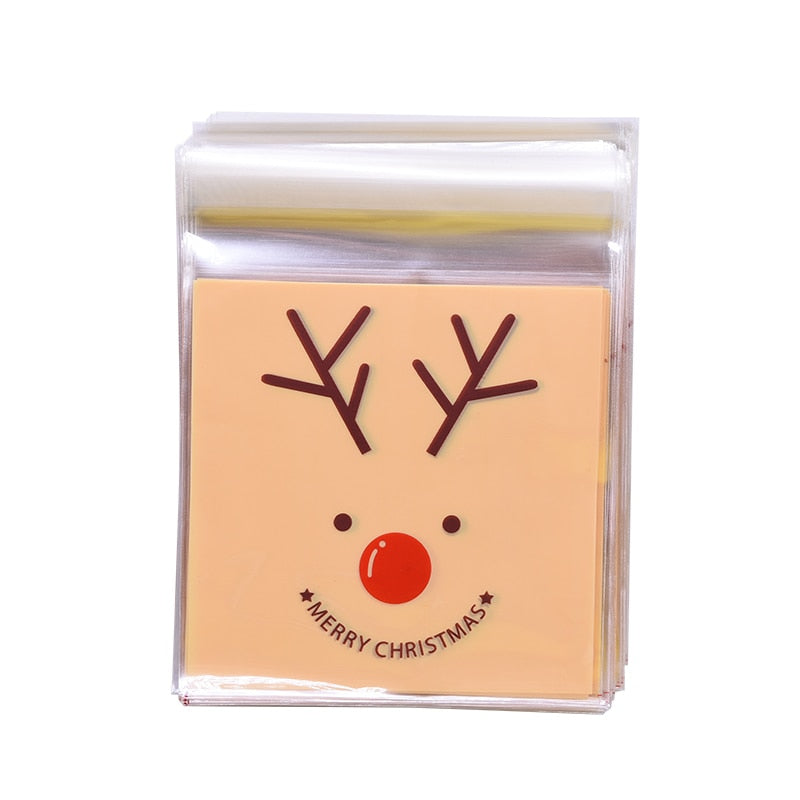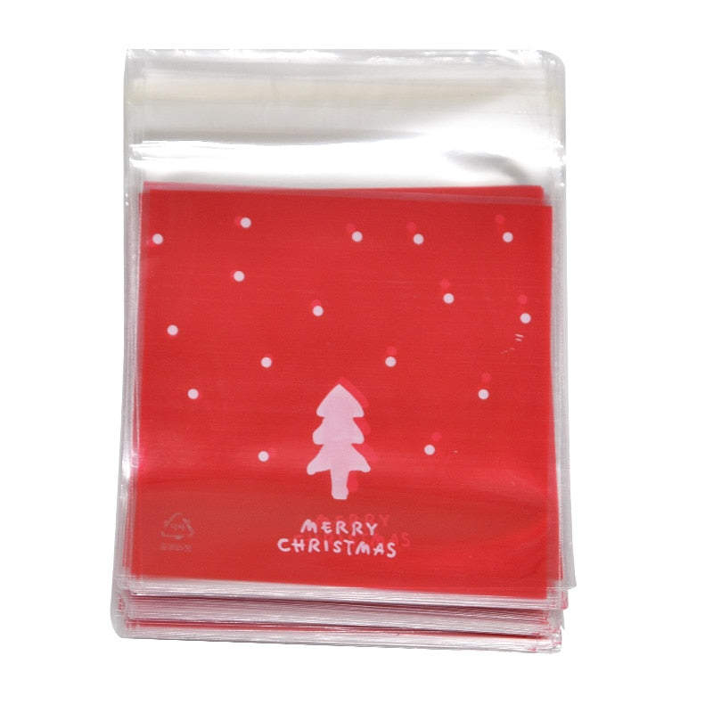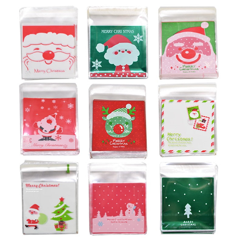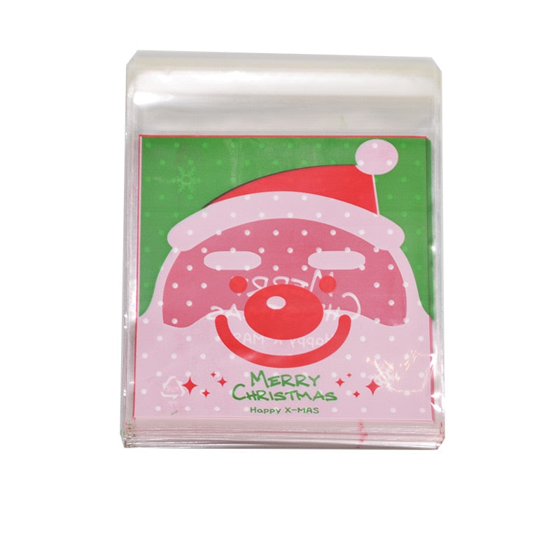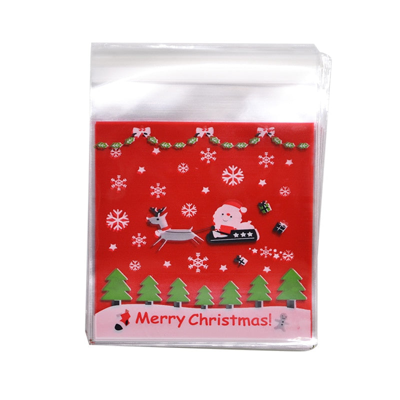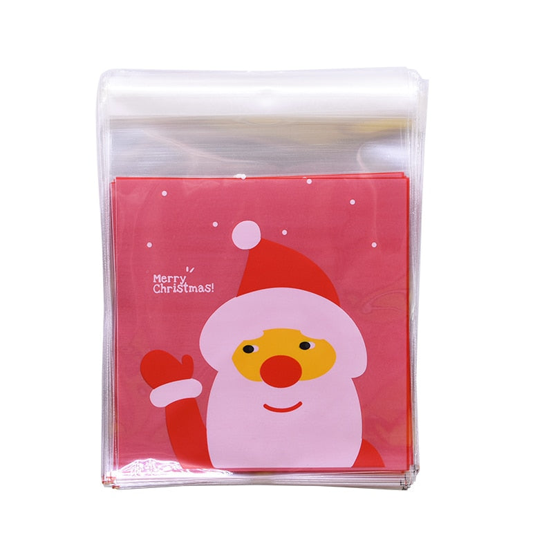 50Pcs 10x10cm Christmas Candy Cookie Gift Bags Plastic Self-adhesive Biscuits Snack Packaging Bags Xmas Party Decoration Favors